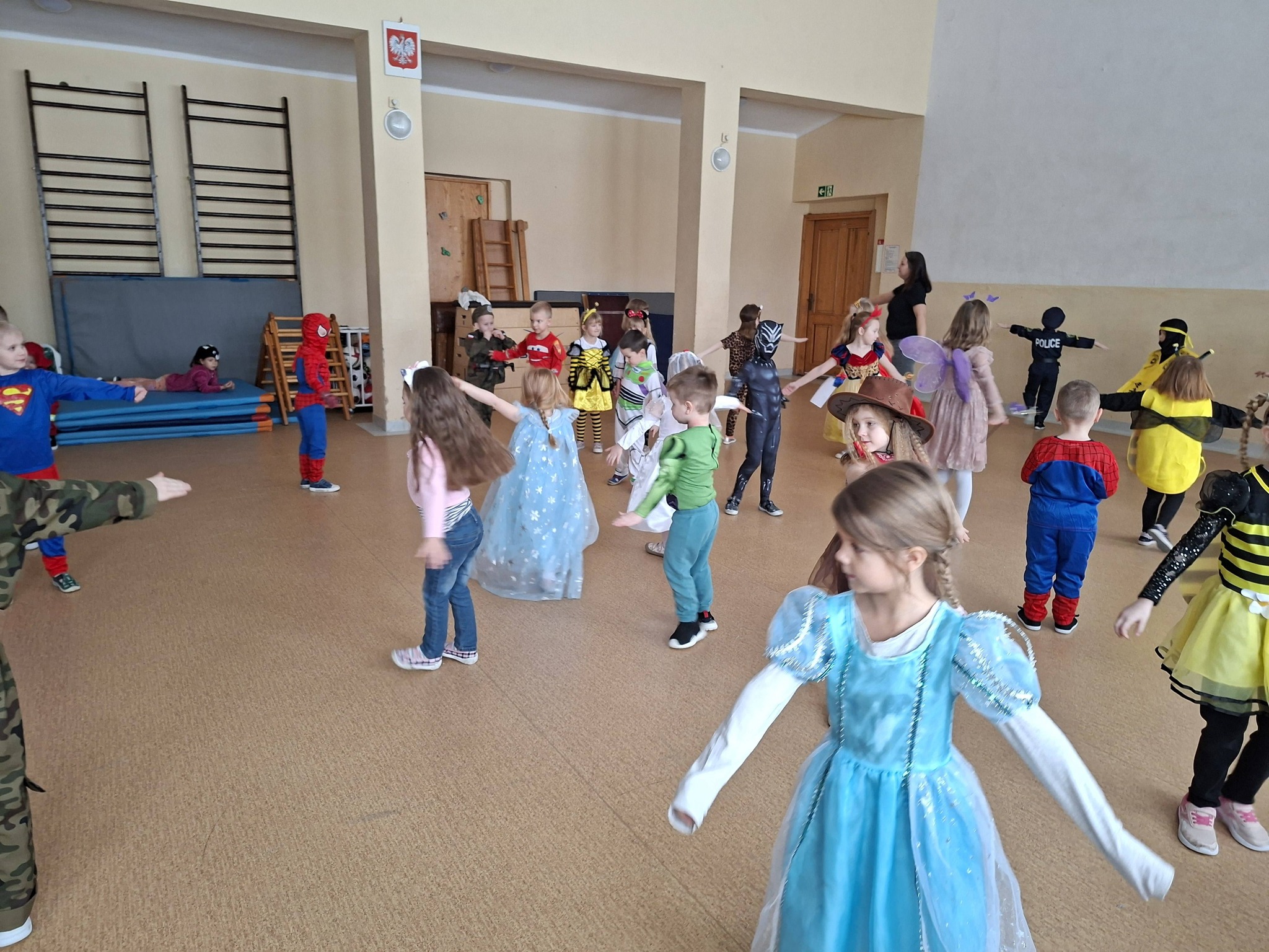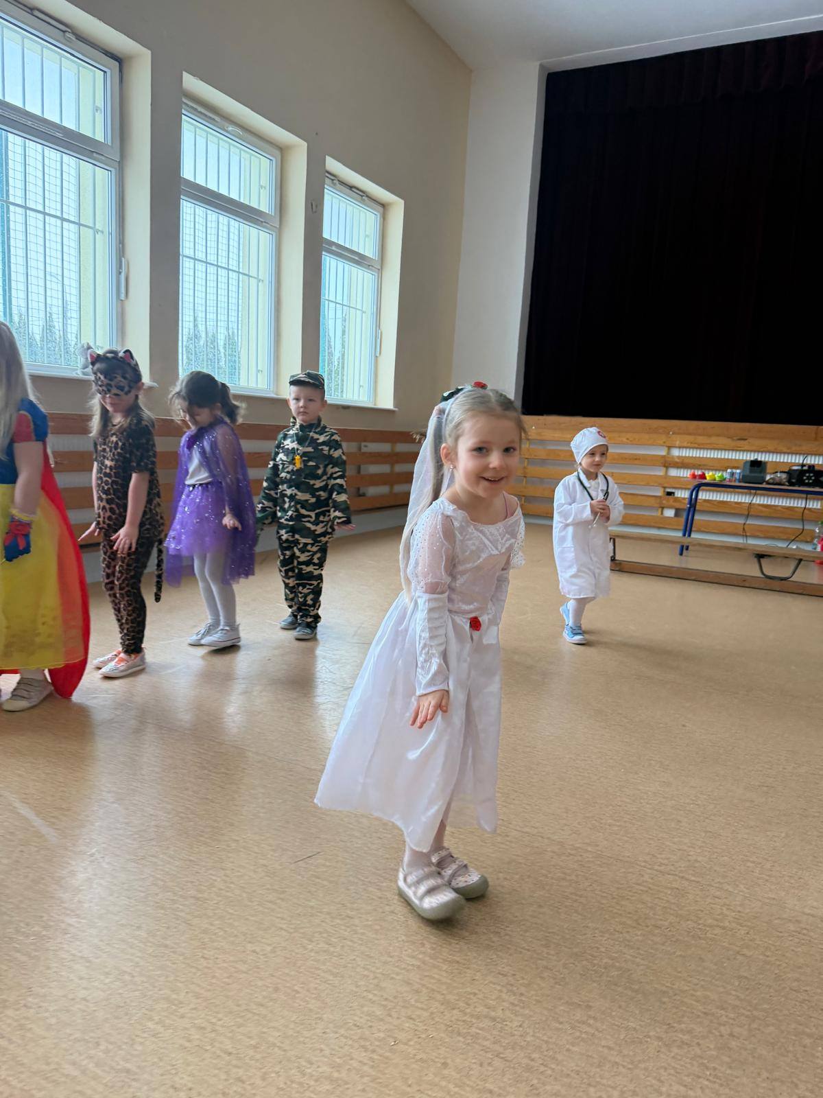 Dzieci przybyły w barwnych strojach karnawałowych, wcielając się w postacie z bajek, baśni oraz świata fantazji. Różnorodność przebrań oraz wesoła muzyka stworzyły wyjątkowy klimat sprzyjający wspólnej zabawie i integracji.