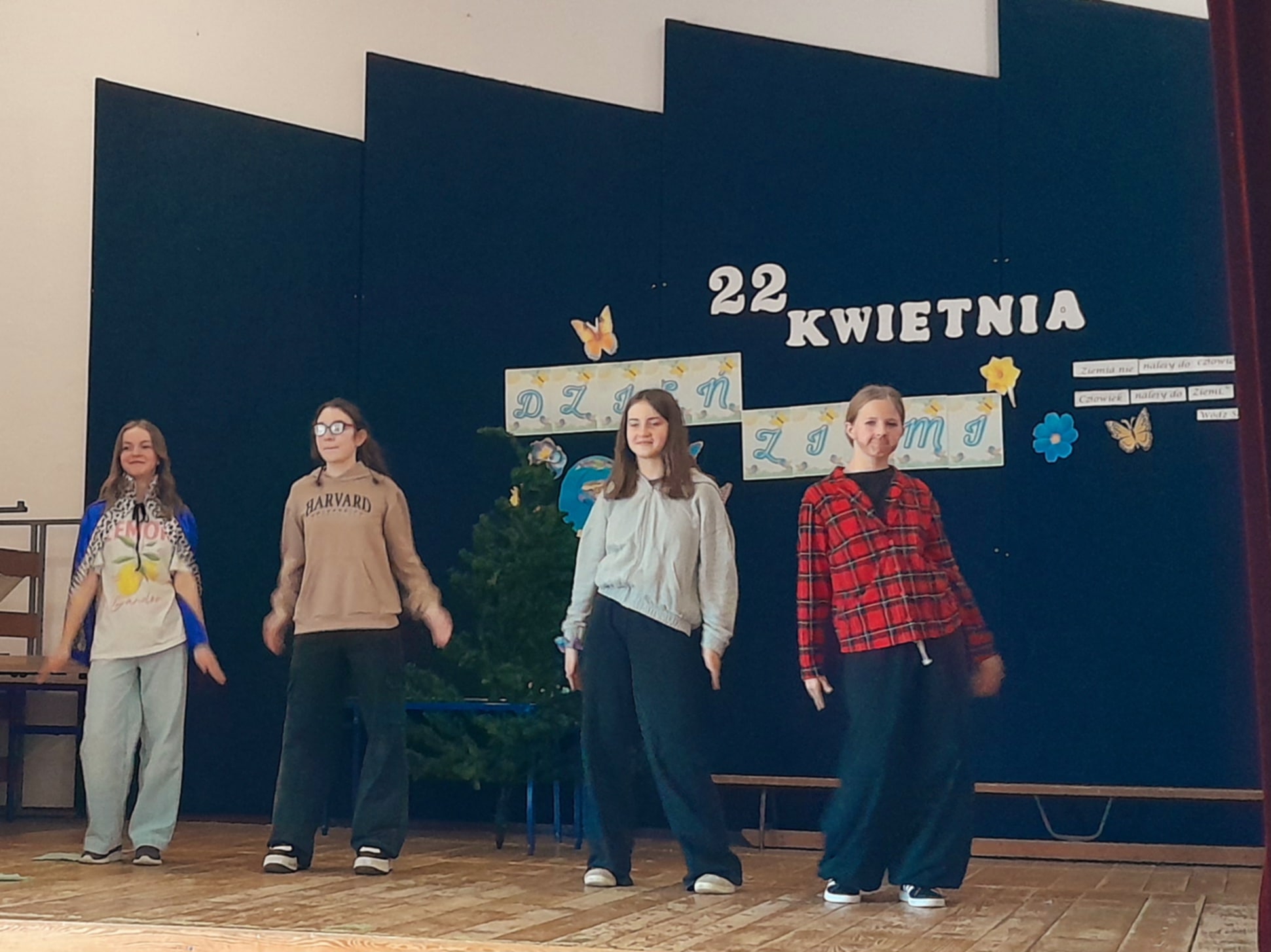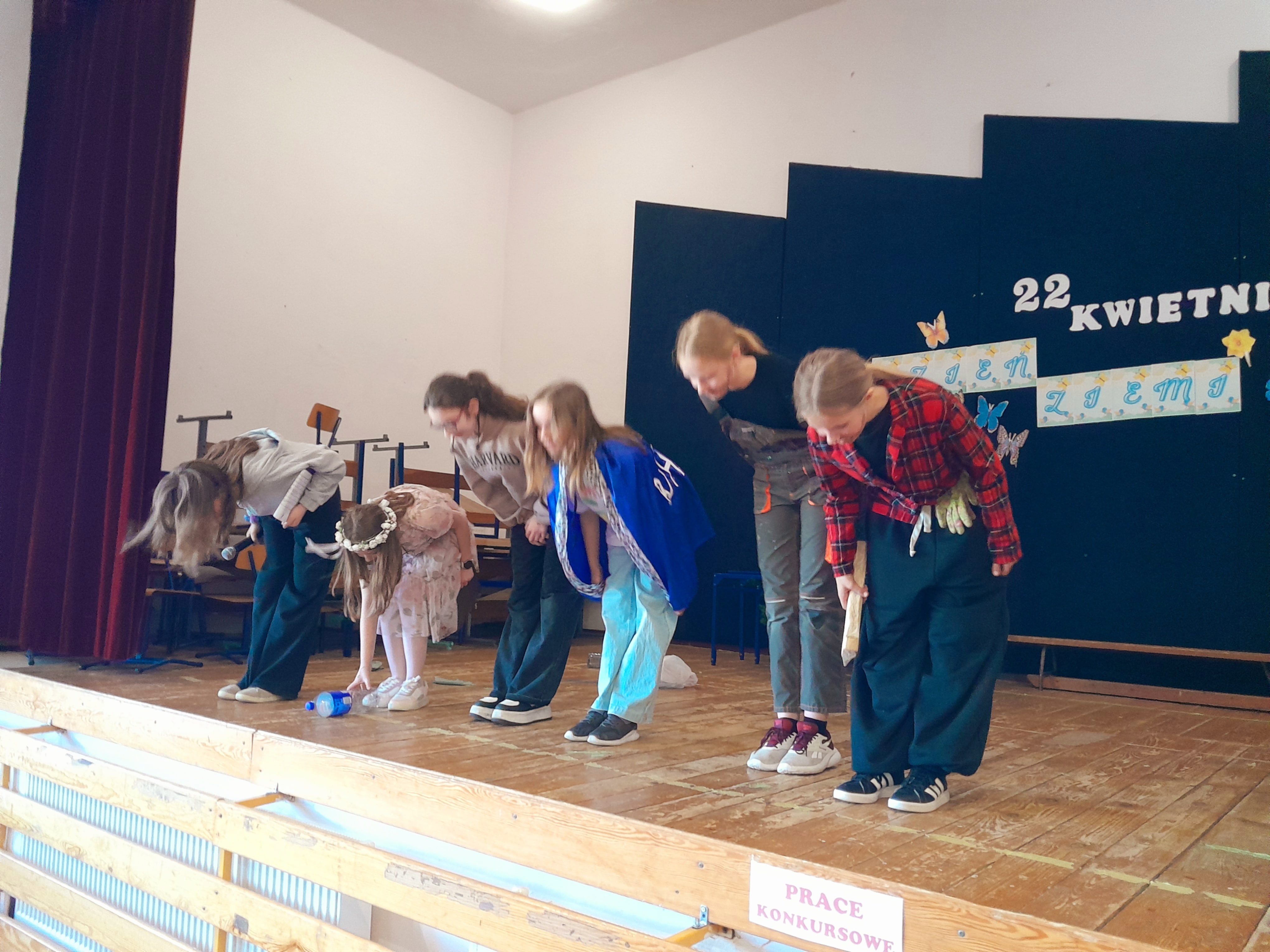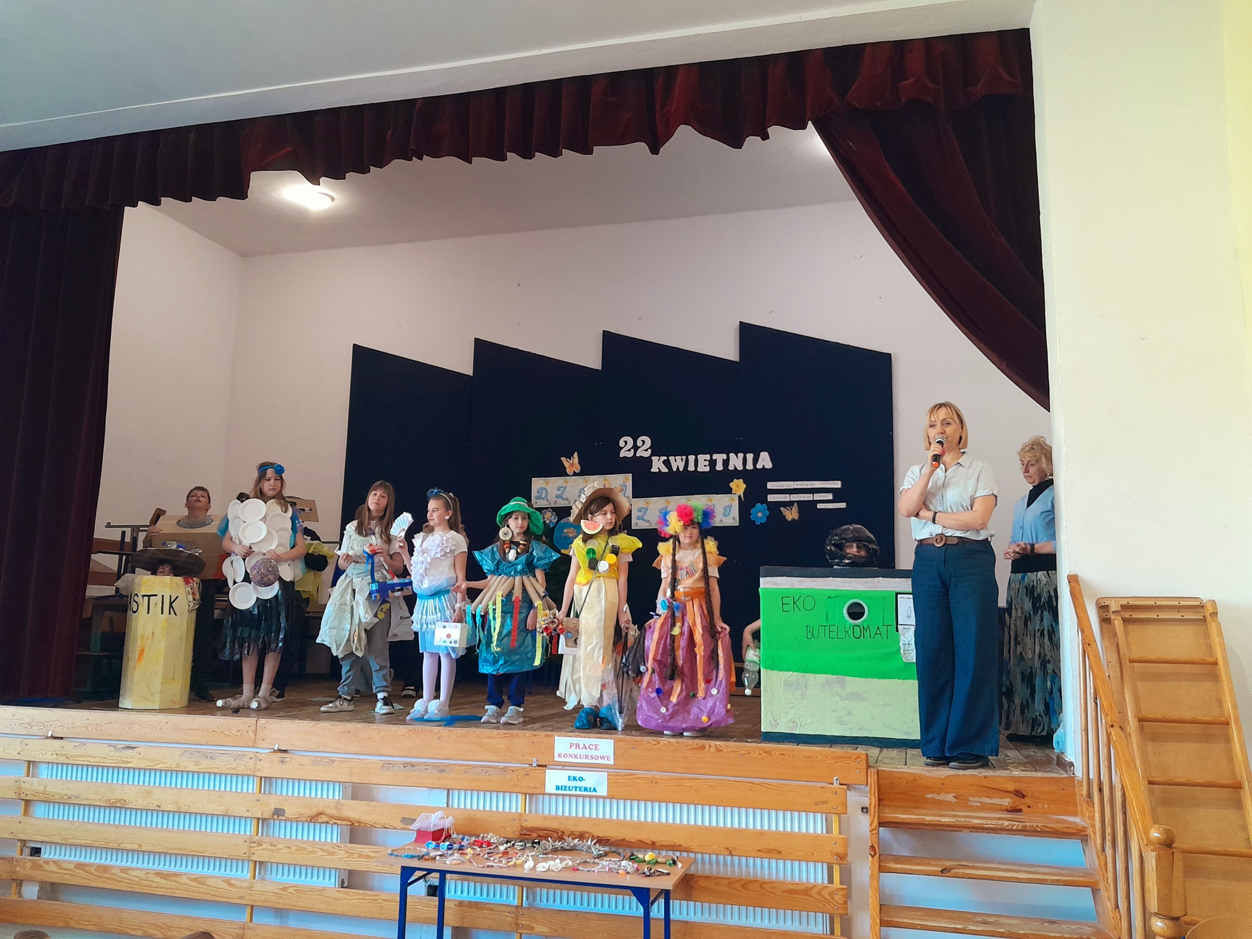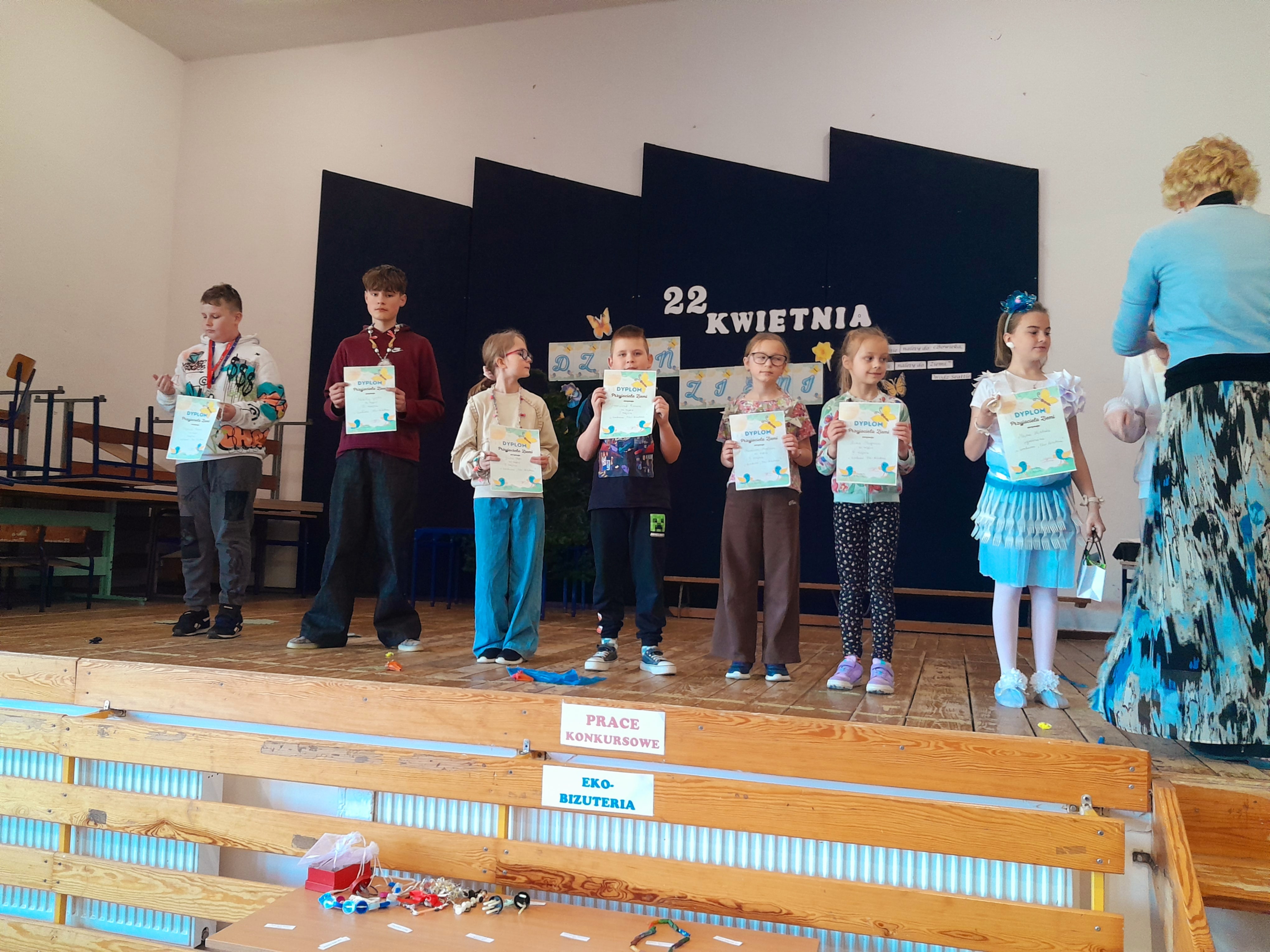 Dzień Ziemi 22 kwietnia obchodziliśmy w naszej szkole Dzień Ziemi. Z tej okazji uczennice kl.5 i kl.6: Klaudia Hintzke, Łucja Motyl, Marcelina Adrian, Marcelina Krukowska, Marianna Zielke i Martyna Jeka pod opieką Danuty Kuźnickiej przygotowały krótkie przedstawienie o zagrożeniach Ziemi. Występ zakończył się tańcem na cześć MATKI ZIEMI. Po występie odbył się pokaz mody ekologicznej, który poprowadziły uczennice Łucja Motyl i Klaudia Hintzke. Każda klasa przygotowała strój ekologiczny. Uczniowie byli bardzo kreatywni a prace różnorodne. Pokaz był rodzajem manifestu — uczniowie pokazali, że ubrania mogą mieć znaczenie, że można wyglądać dobrze, nie niszcząc przy tym planety. Kolekcje stworzone zostały w duchu eko — z materiałów z recyklingu, rzeczy przerobionych i takich, które zamiast trafić do kosza… dostały drugą szansę. Pokaz miał charakter konkursowy. I miejsce zajęła klasa siódma, drugie klasa druga a III klasa czwarta. Podczas naszej imprezy został też rozstrzygnięty konkurs na Eko-biżuterię. W grupie młodszej I miejsce zajął Franciszek Renusz, II ex aequo Marianna Abraham i Julia Styn a III miejsce Anna Margrian. W grupie starszej I miejsce zajął Wojciech Remer, II Maria Stencel a trzecie Mikołaj Gojke. Wyróżnienie otrzymała Maria Hintzke.