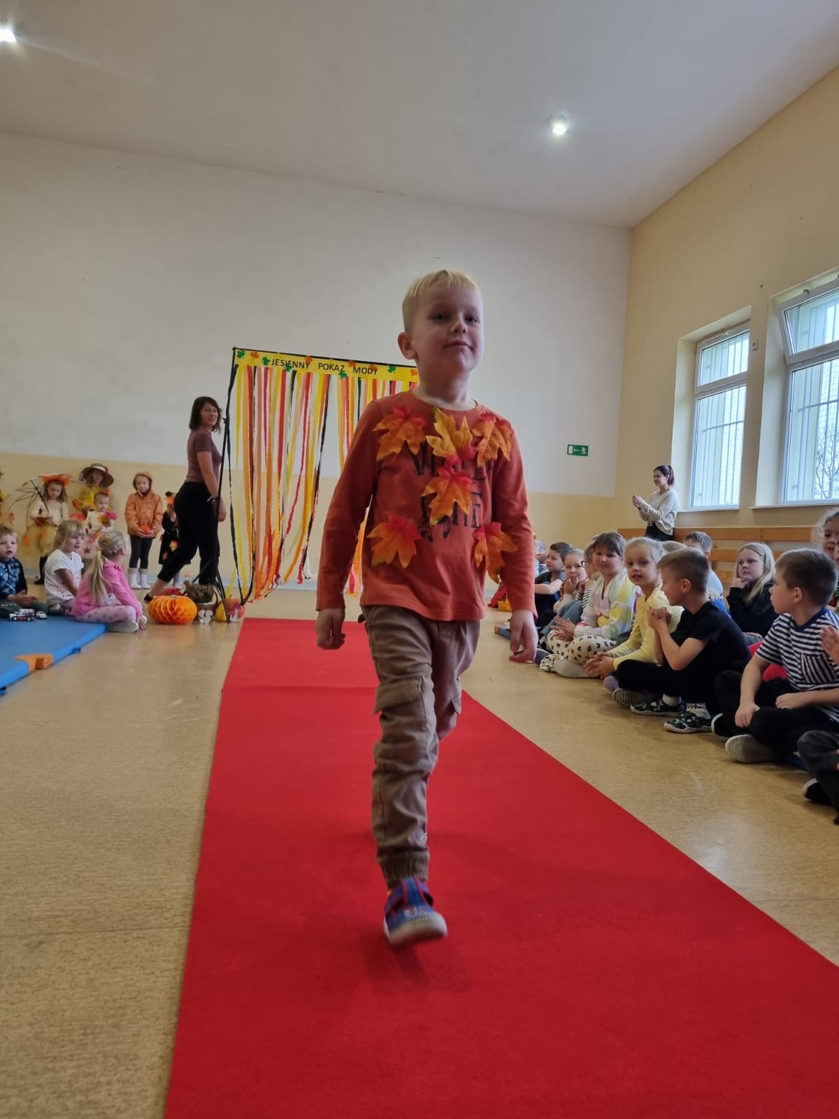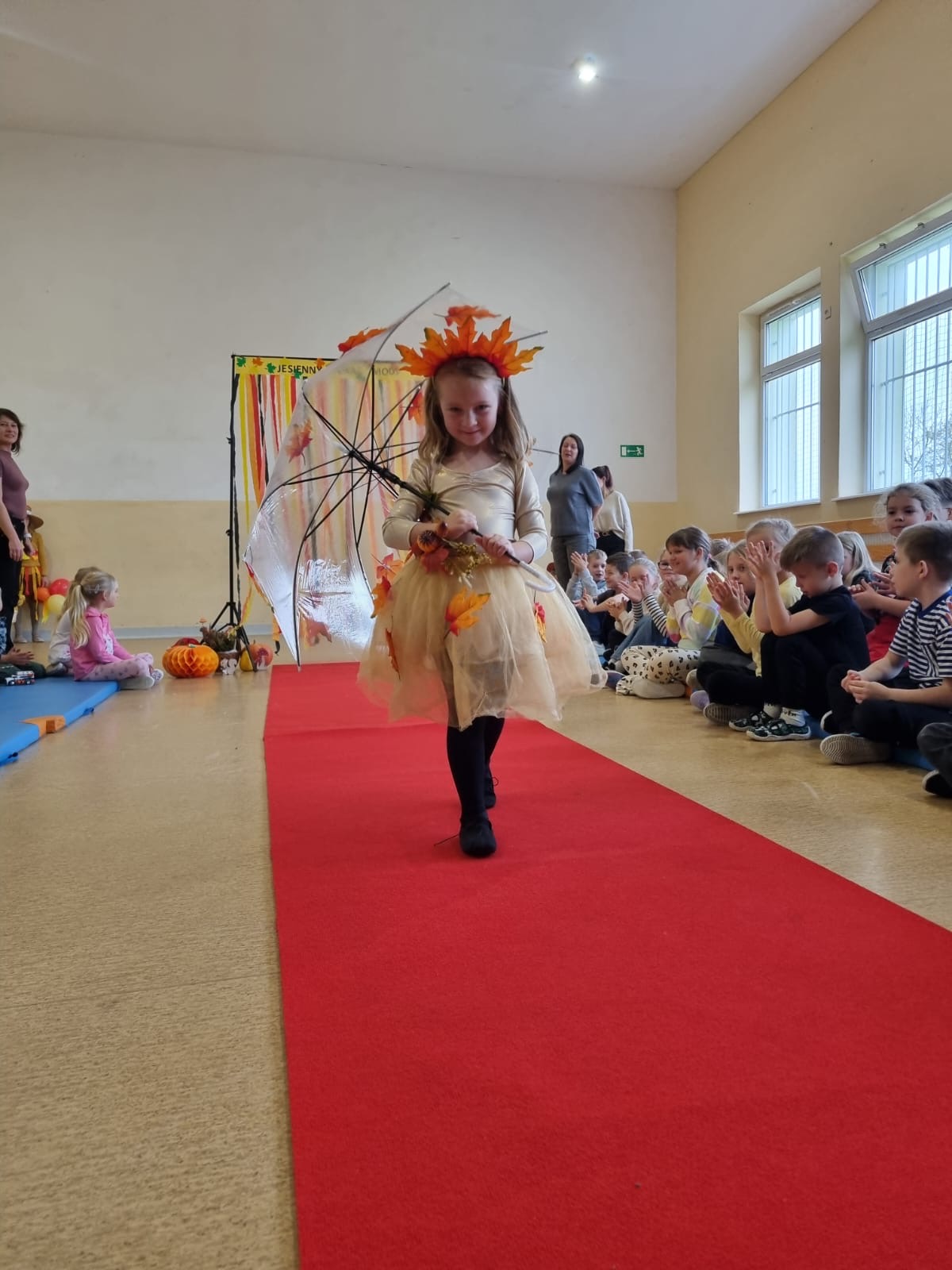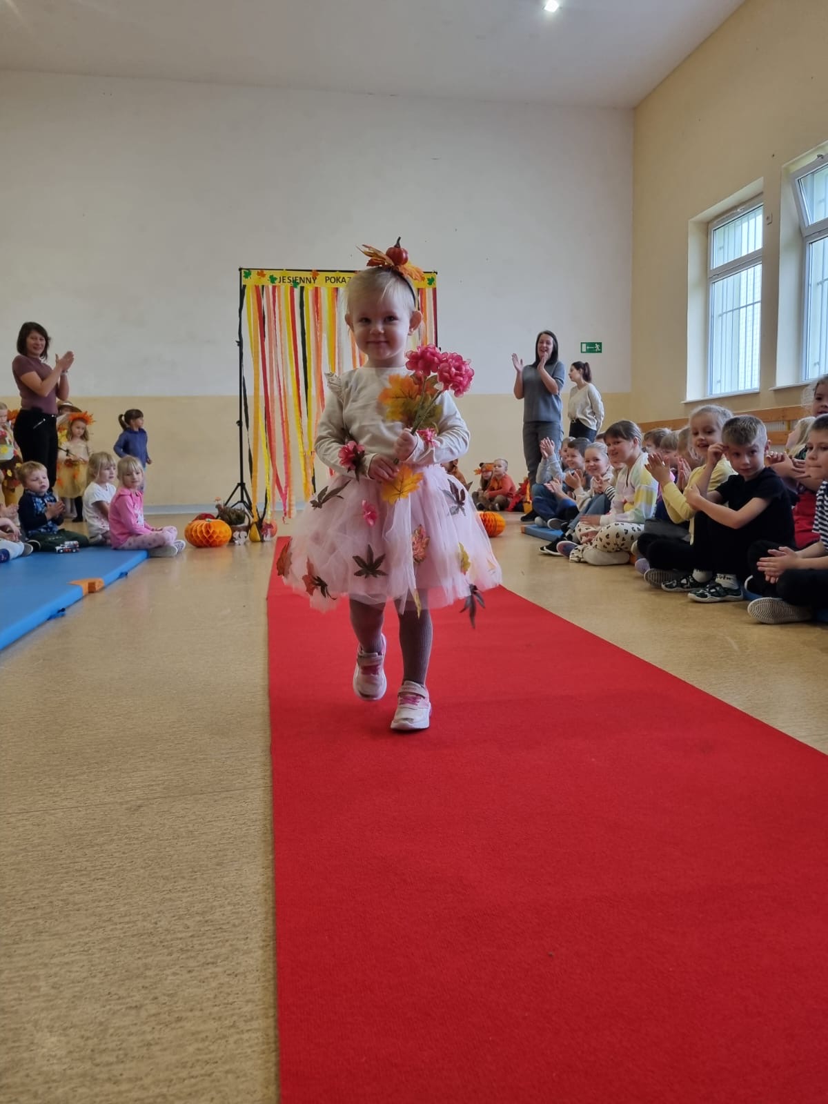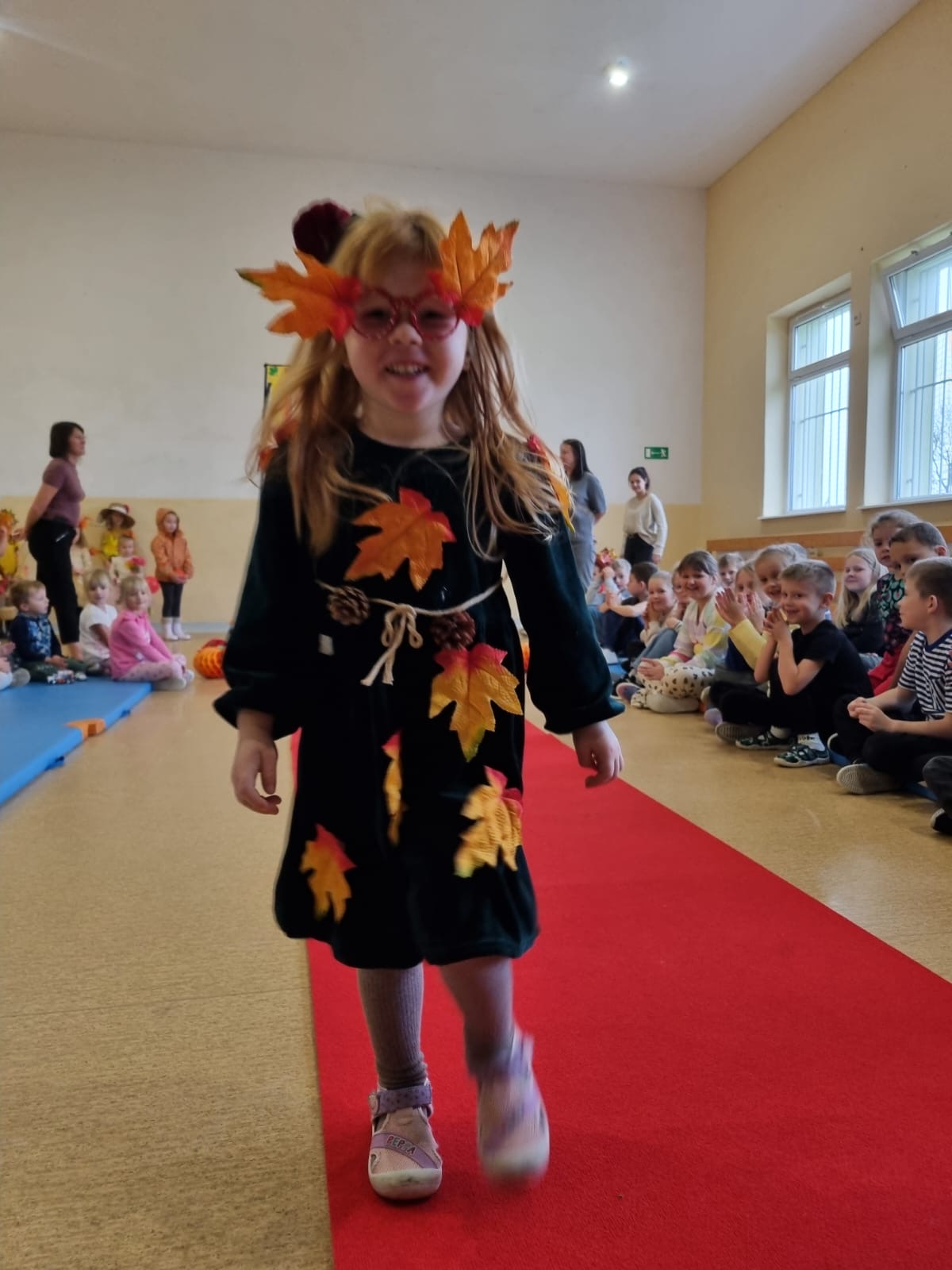29 października 2025 roku w naszym przedszkolu odbył się niezwykły konkurs pt. „Jesienny Pokaz Mody”, który wprowadził wszystkich w prawdziwie kolorowy, jesienny nastrój. Dzieci z wielką radością zaprezentowały swoje wspaniałe stroje inspirowane darami jesieni — na wybiegu pojawiły się liściaste sukienki, kolorowe kapelusze, peleryny i parasole z liści, a nawet jesienne księżniczki. Każda kreacja zachwycała pomysłowością, starannością wykonania i bogactwem barw. Dzieci z dumą prezentowały się przed publicznością, a uśmiechy nie schodziły z ich twarzy. Jury miało niełatwe zadanie, ponieważ wszystkie stroje były wyjątkowe i przygotowane z ogromnym zaangażowaniem. Każde dziecko dostało mały upominek, natomiast dzieci, których stroje były najbardziej oryginalne otrzymały wyróżnienia oraz nagrody: