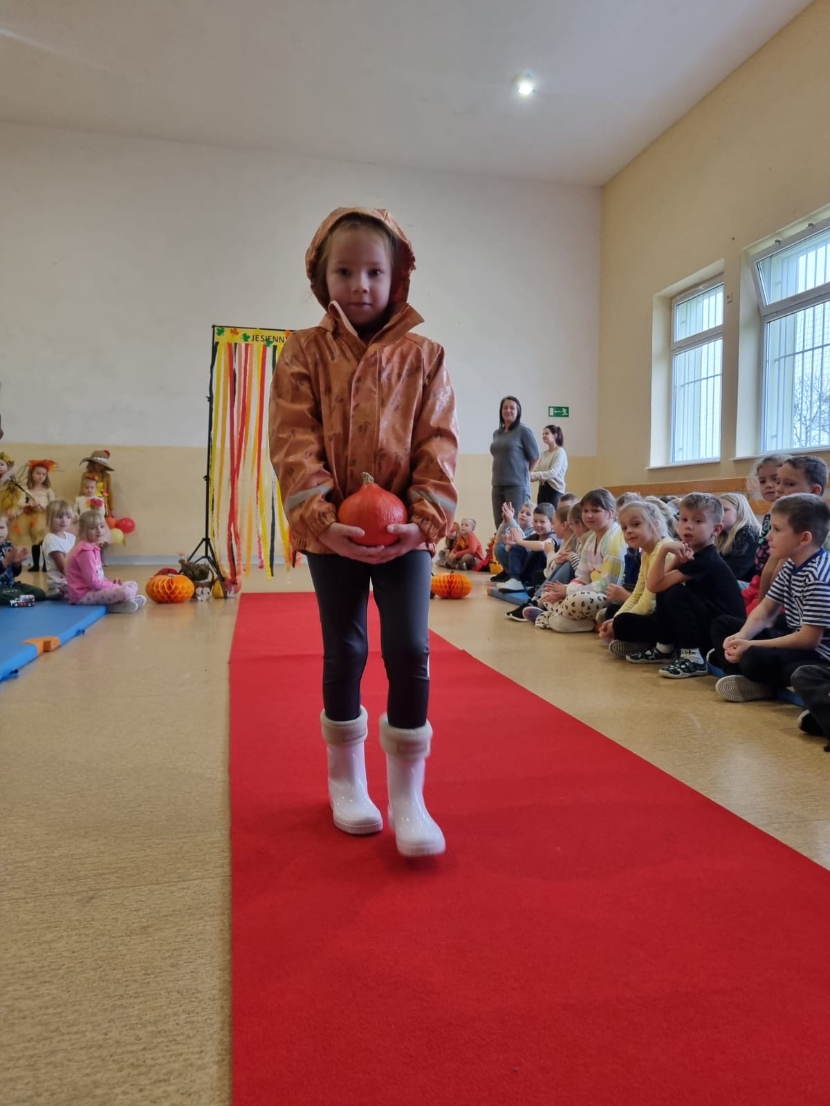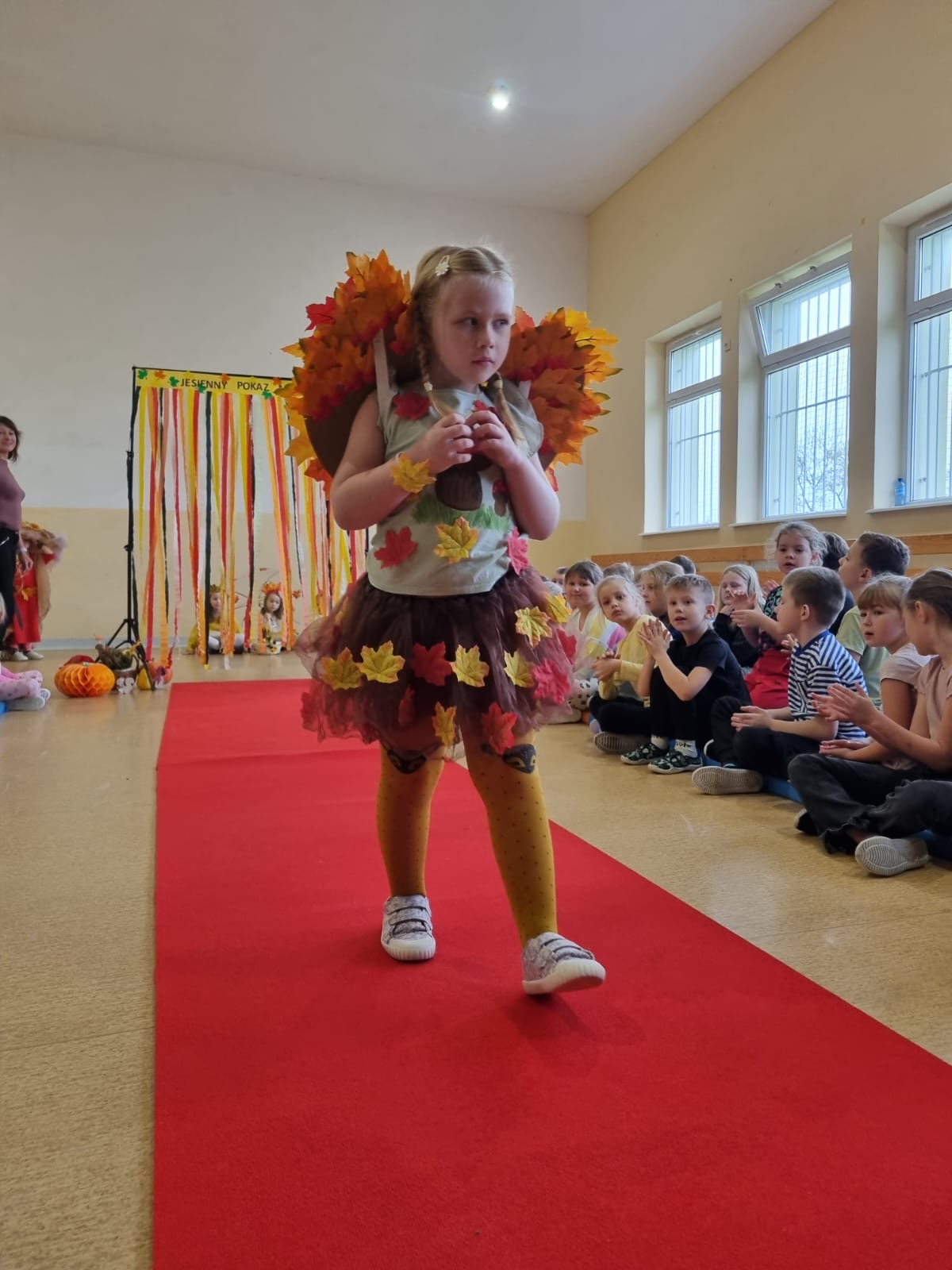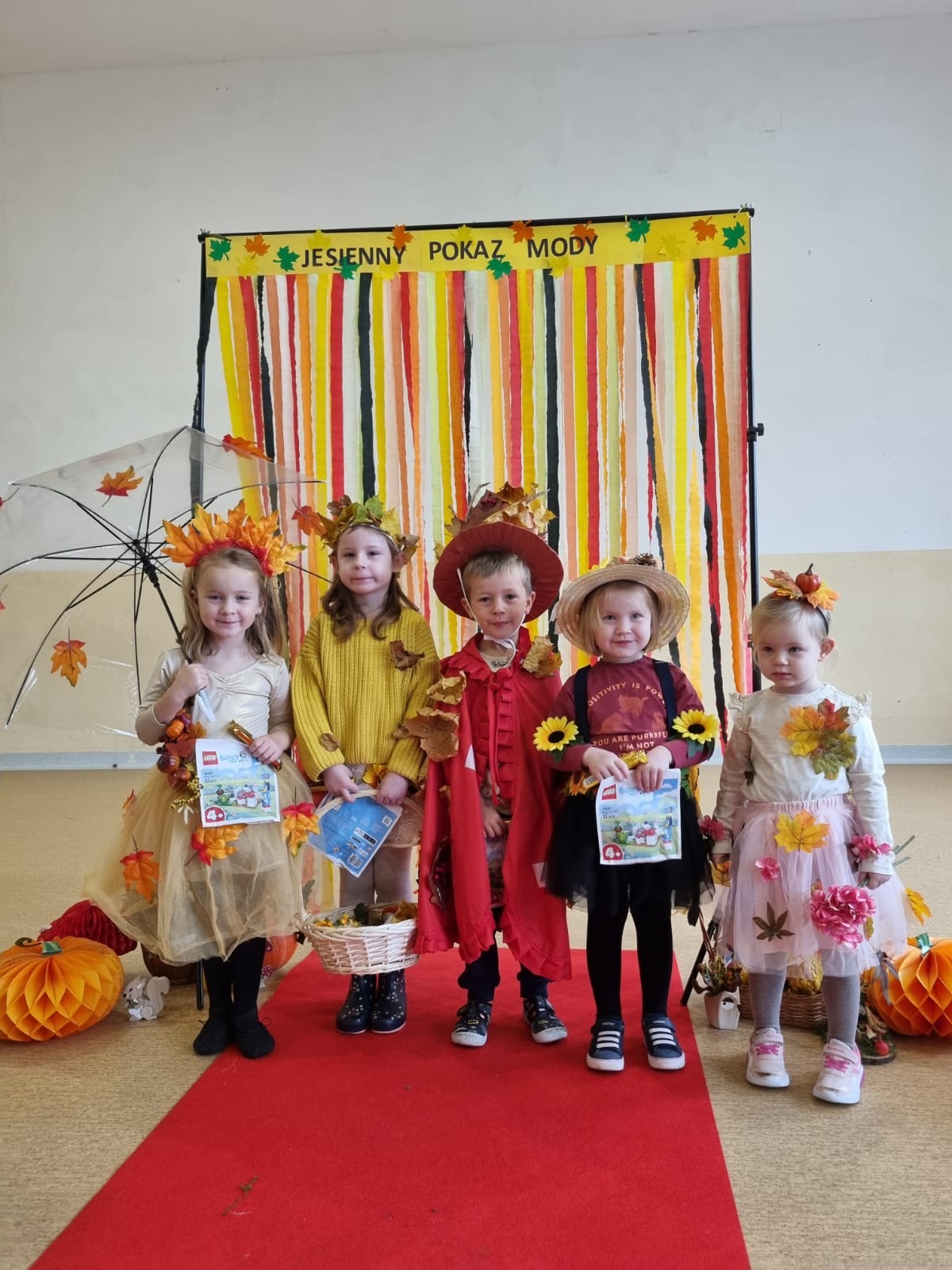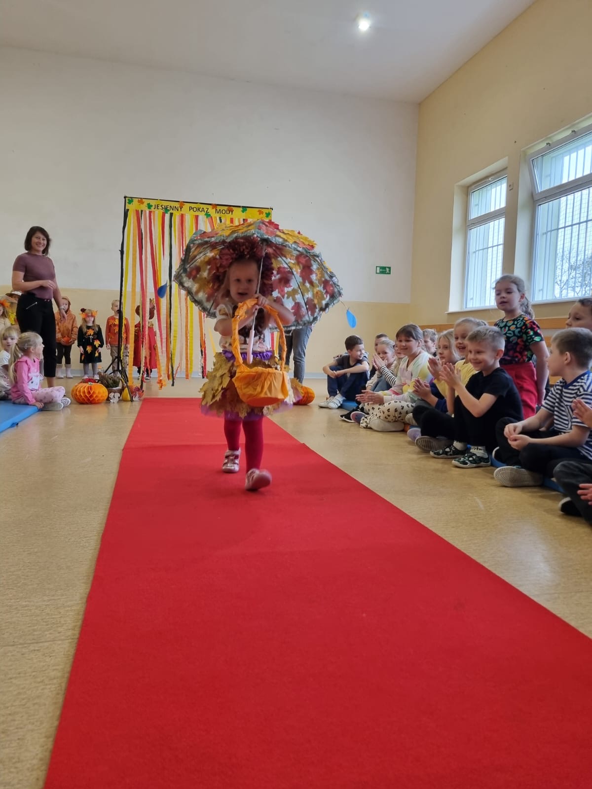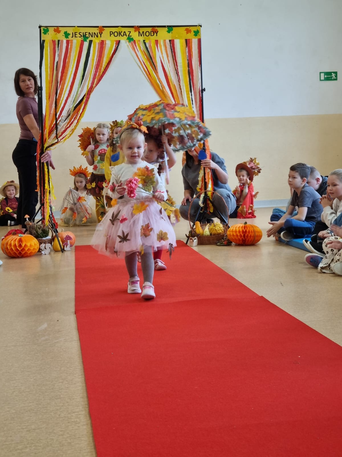 29 października 2025 roku w naszym przedszkolu odbył się niezwykły konkurs pt. „Jesienny Pokaz Mody”, który wprowadził wszystkich w prawdziwie kolorowy, jesienny nastrój. Dzieci z wielką radością zaprezentowały swoje wspaniałe stroje inspirowane darami jesieni — na wybiegu pojawiły się liściaste sukienki, kolorowe kapelusze, peleryny i parasole z liści, a nawet jesienne księżniczki. Każda kreacja zachwycała pomysłowością, starannością wykonania i bogactwem barw. Dzieci z dumą prezentowały się przed publicznością, a uśmiechy nie schodziły z ich twarzy. Jury miało niełatwe zadanie, ponieważ wszystkie stroje były wyjątkowe i przygotowane z ogromnym zaangażowaniem. Każde dziecko dostało mały upominek, natomiast dzieci, których stroje były najbardziej oryginalne otrzymały wyróżnienia oraz nagrody: