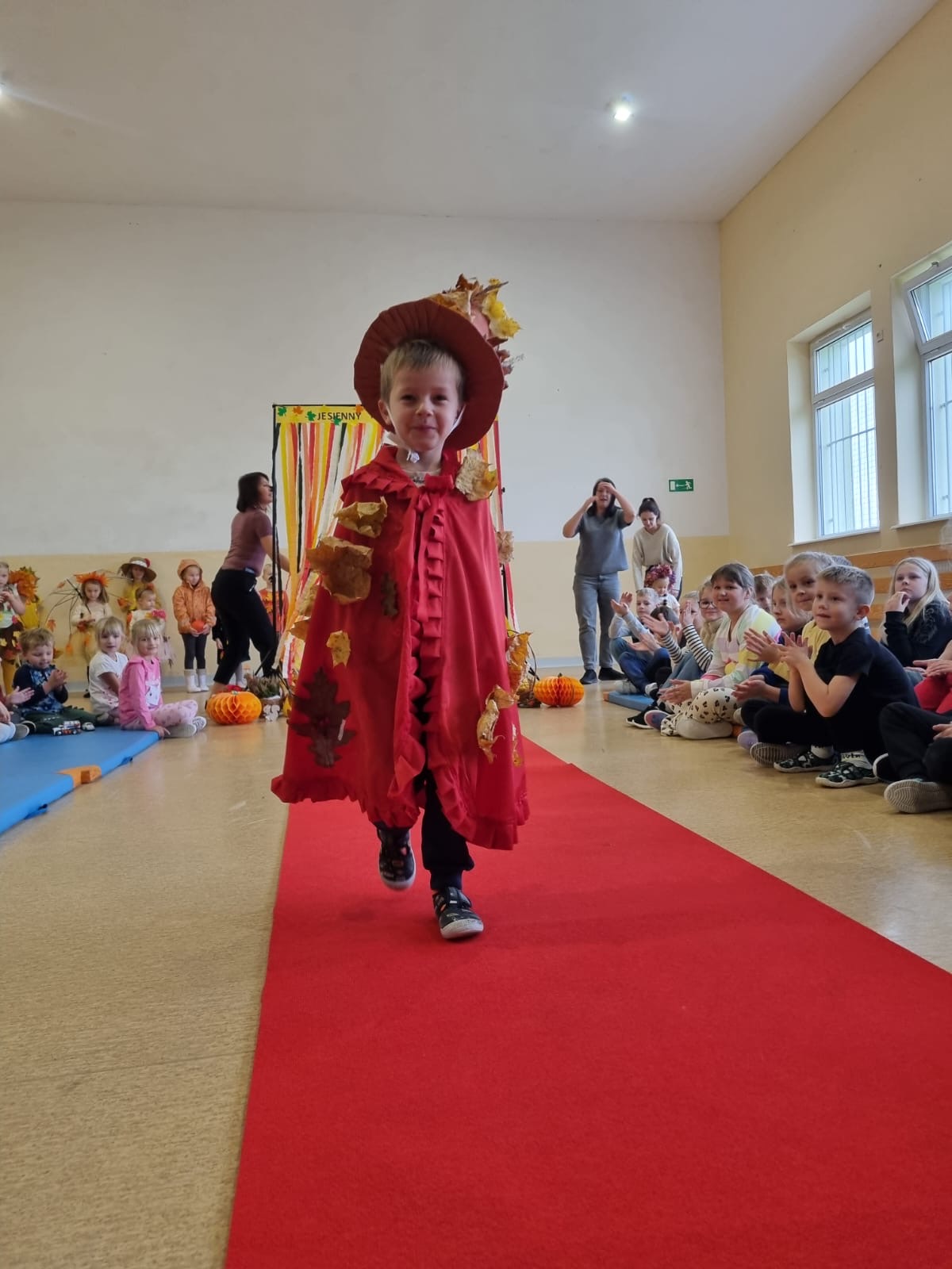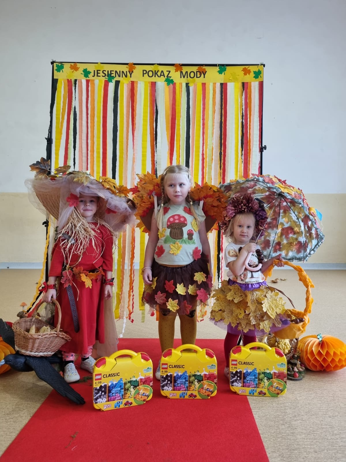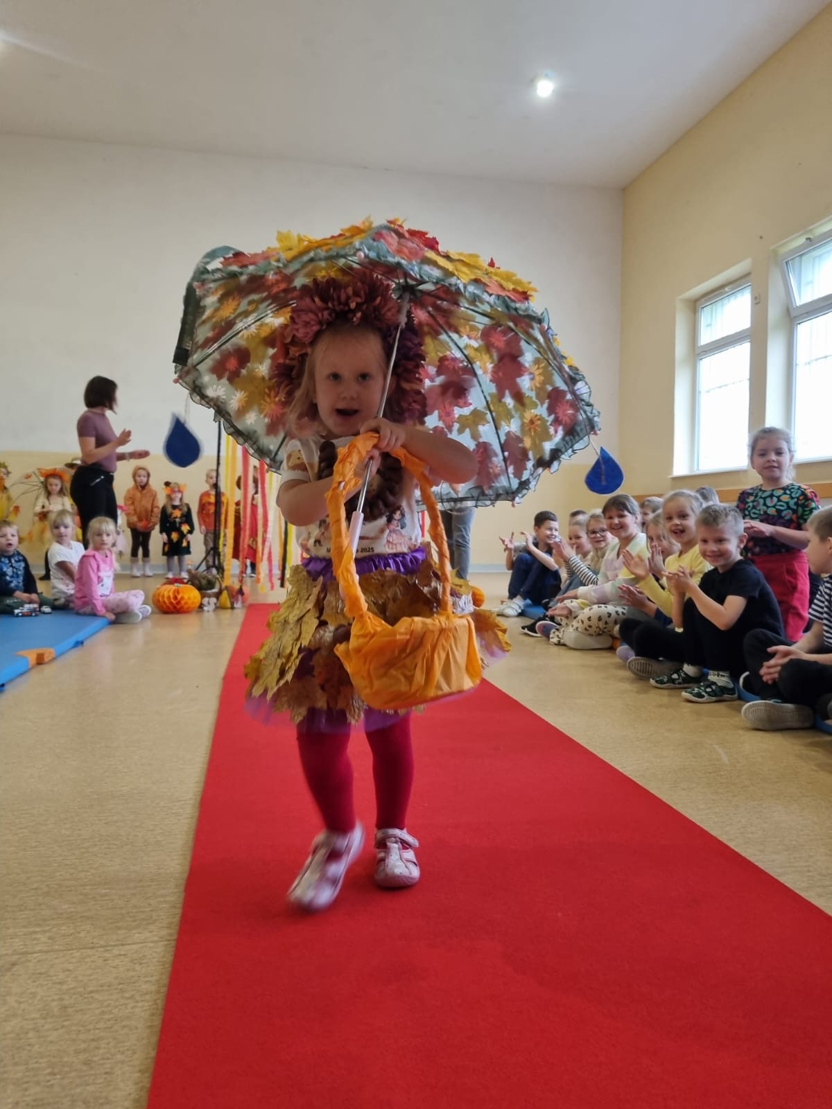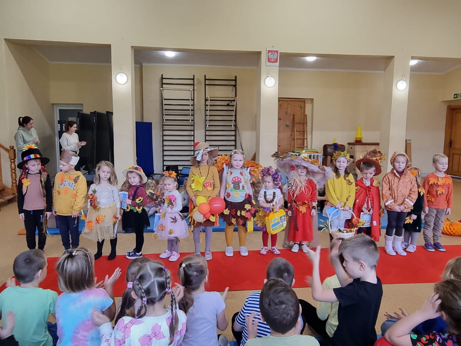29 października 2025 roku w naszym przedszkolu odbył się niezwykły konkurs pt. „Jesienny Pokaz Mody”, który wprowadził wszystkich w prawdziwie kolorowy, jesienny nastrój. Dzieci z wielką radością zaprezentowały swoje wspaniałe stroje inspirowane darami jesieni — na wybiegu pojawiły się liściaste sukienki, kolorowe kapelusze, peleryny i parasole z liści, a nawet jesienne księżniczki. Każda kreacja zachwycała pomysłowością, starannością wykonania i bogactwem barw. Dzieci z dumą prezentowały się przed publicznością, a uśmiechy nie schodziły z ich twarzy. Jury miało niełatwe zadanie, ponieważ wszystkie stroje były wyjątkowe i przygotowane z ogromnym zaangażowaniem. Każde dziecko dostało mały upominek, natomiast dzieci, których stroje były najbardziej oryginalne otrzymały wyróżnienia oraz nagrody: