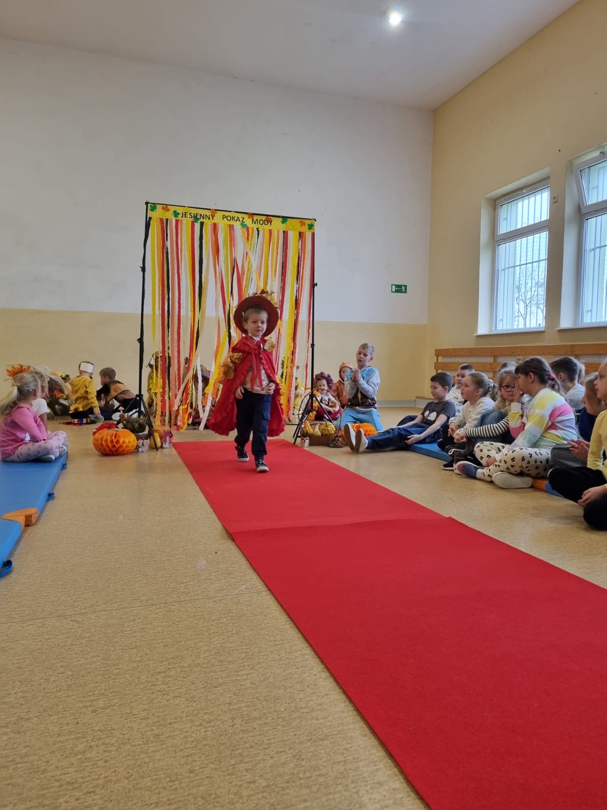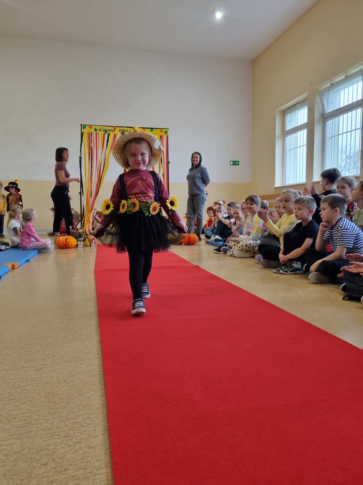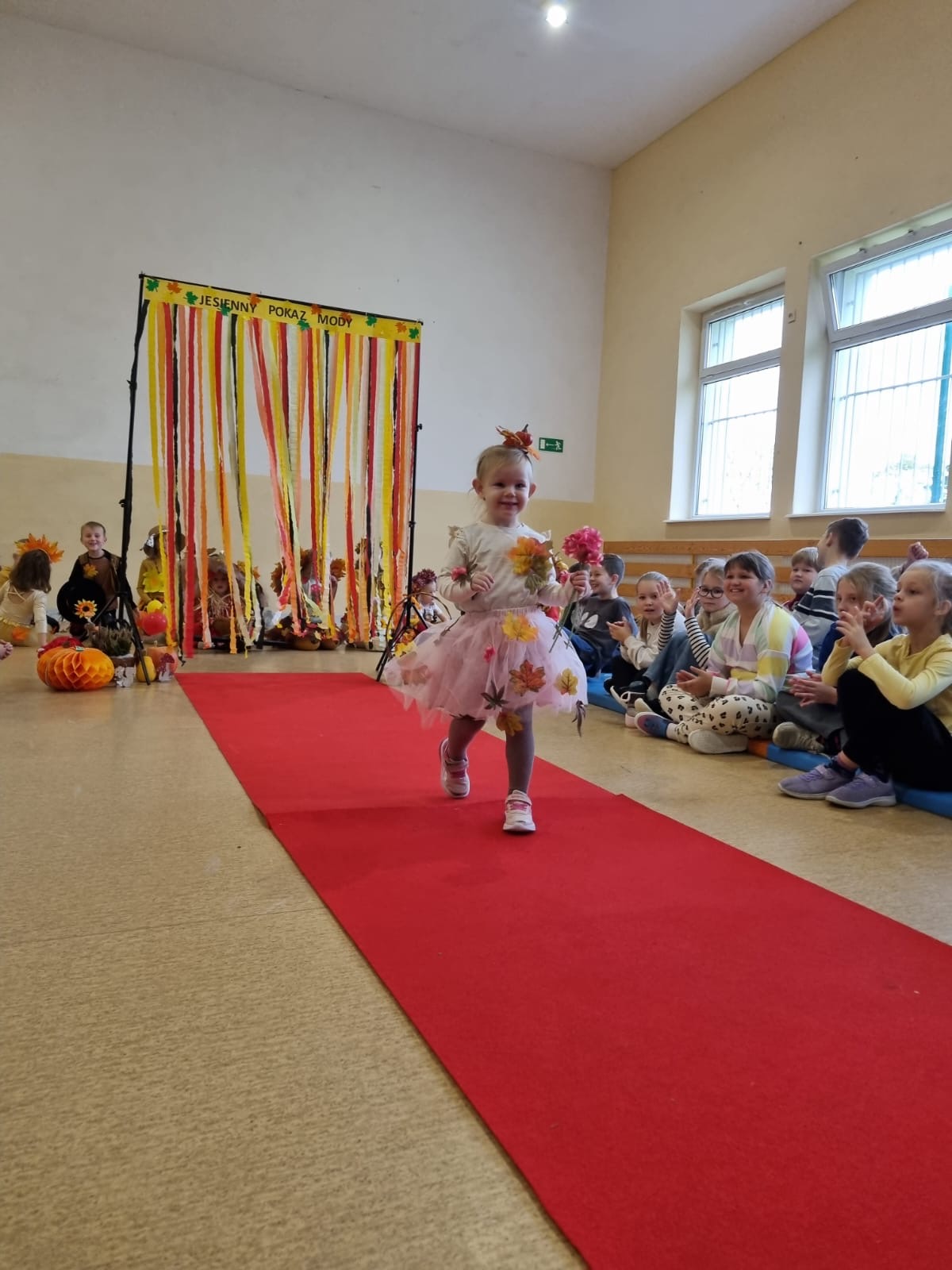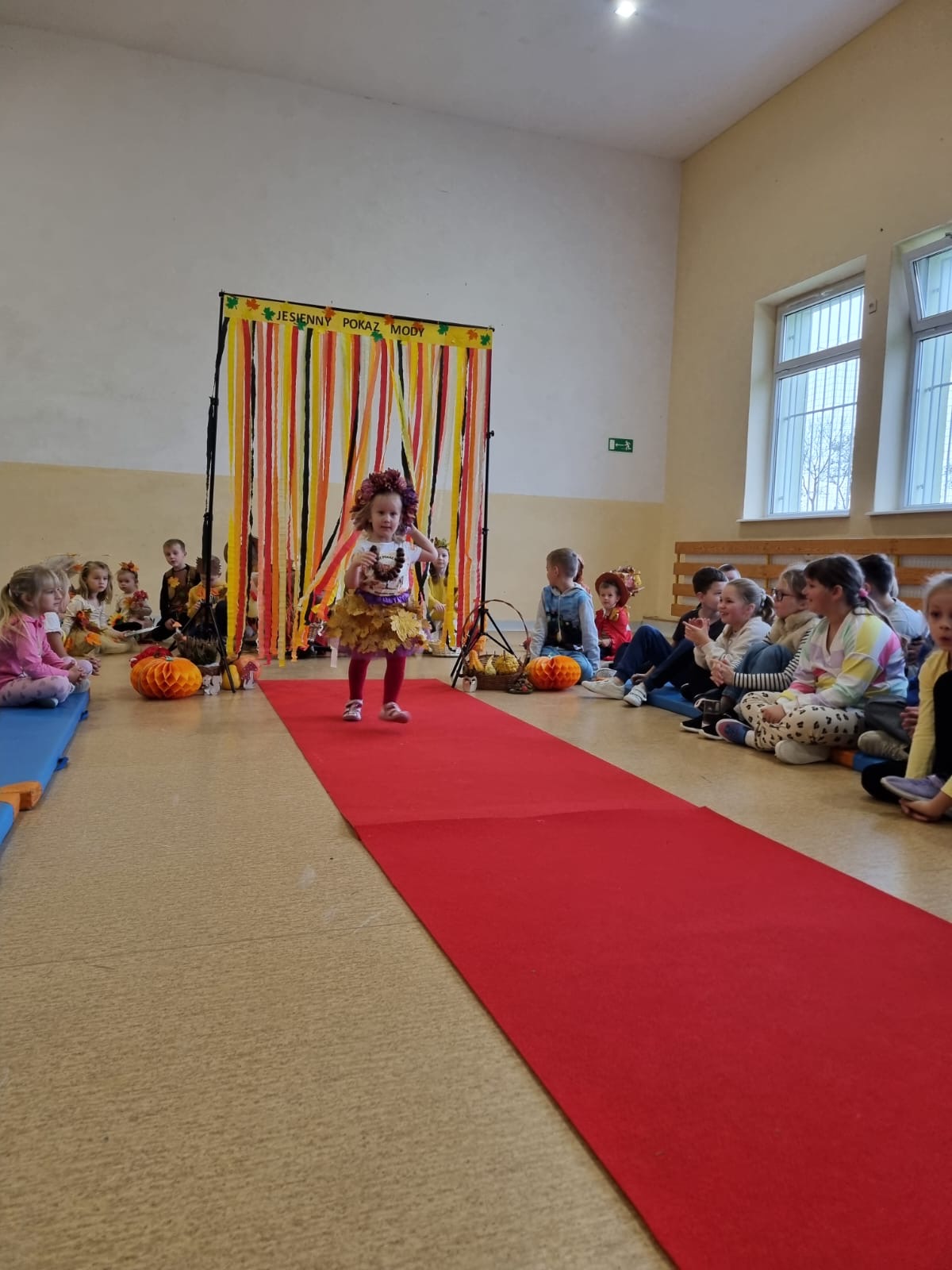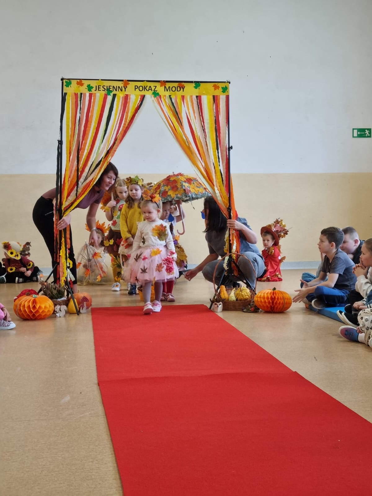 29 października 2025 roku w naszym przedszkolu odbył się niezwykły konkurs pt. „Jesienny Pokaz Mody”, który wprowadził wszystkich w prawdziwie kolorowy, jesienny nastrój. Dzieci z wielką radością zaprezentowały swoje wspaniałe stroje inspirowane darami jesieni — na wybiegu pojawiły się liściaste sukienki, kolorowe kapelusze, peleryny i parasole z liści, a nawet jesienne księżniczki. Każda kreacja zachwycała pomysłowością, starannością wykonania i bogactwem barw. Dzieci z dumą prezentowały się przed publicznością, a uśmiechy nie schodziły z ich twarzy. Jury miało niełatwe zadanie, ponieważ wszystkie stroje były wyjątkowe i przygotowane z ogromnym zaangażowaniem. Każde dziecko dostało mały upominek, natomiast dzieci, których stroje były najbardziej oryginalne otrzymały wyróżnienia oraz nagrody: