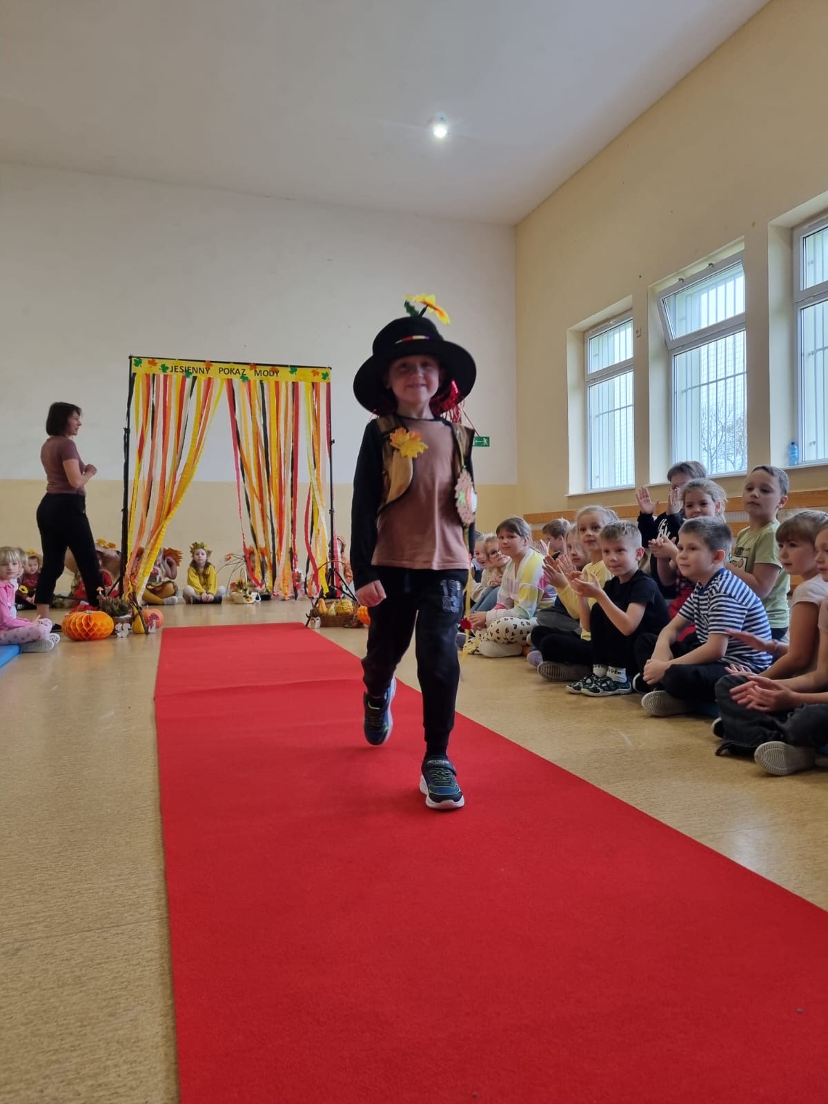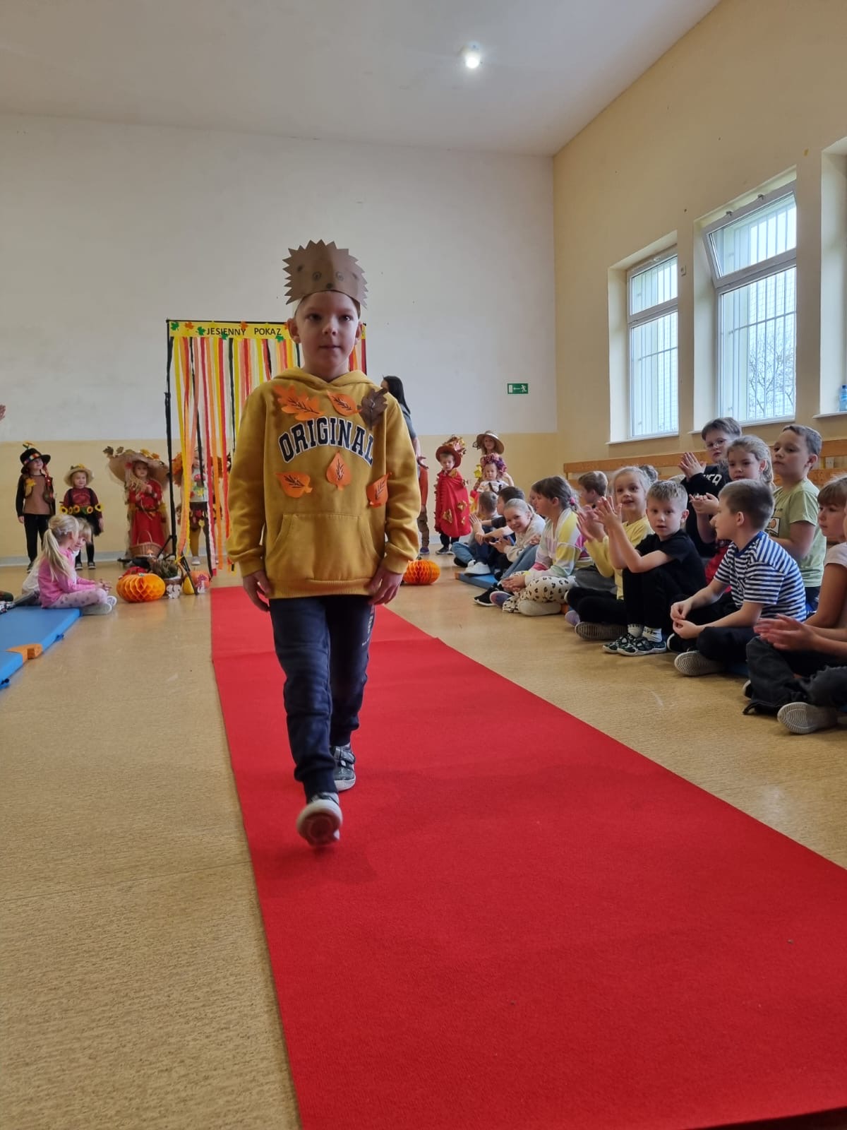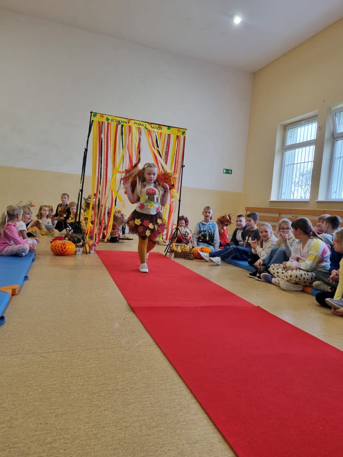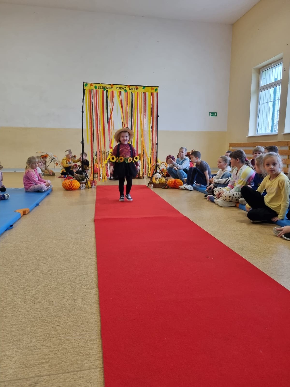29 października 2025 roku w naszym przedszkolu odbył się niezwykły konkurs pt. „Jesienny Pokaz Mody”, który wprowadził wszystkich w prawdziwie kolorowy, jesienny nastrój. Dzieci z wielką radością zaprezentowały swoje wspaniałe stroje inspirowane darami jesieni — na wybiegu pojawiły się liściaste sukienki, kolorowe kapelusze, peleryny i parasole z liści, a nawet jesienne księżniczki. Każda kreacja zachwycała pomysłowością, starannością wykonania i bogactwem barw. Dzieci z dumą prezentowały się przed publicznością, a uśmiechy nie schodziły z ich twarzy. Jury miało niełatwe zadanie, ponieważ wszystkie stroje były wyjątkowe i przygotowane z ogromnym zaangażowaniem. Każde dziecko dostało mały upominek, natomiast dzieci, których stroje były najbardziej oryginalne otrzymały wyróżnienia oraz nagrody: