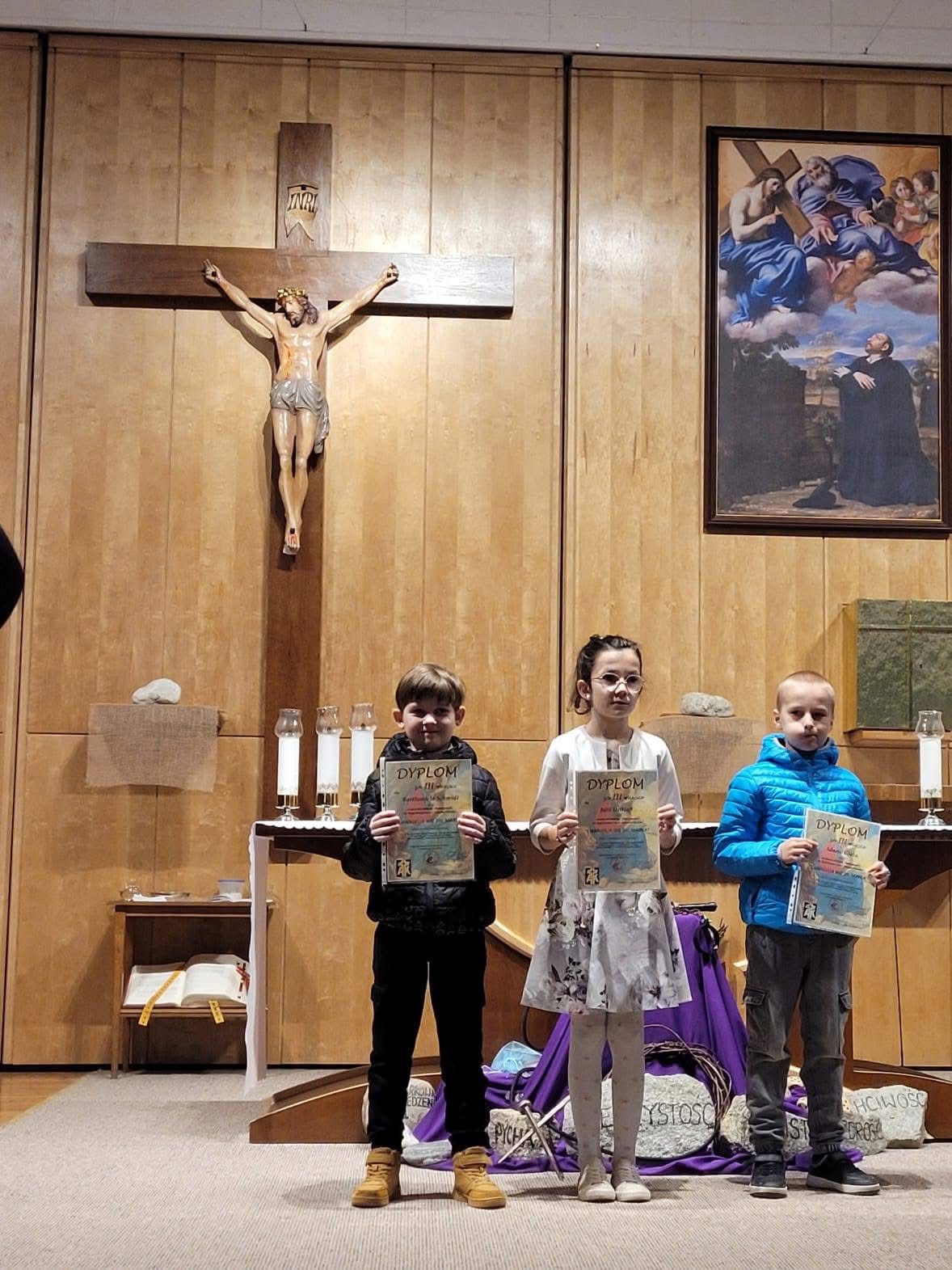 Konkurs Biblijny rozstrzygnięty Z dumą informujemy, że uczeń naszej szkoły Bartłomiej Schmidt brał udział w Konkursie Wojewodzko -Metropolitalnym Plastycznym z Ewangelii św. Marka i zajął III miejsce. Uroczyste wręczenie nagród odbyło się 15 marca 2026 roku o godz.12 w Sanktuarium św. Ignacego Loyoli w Jastrzębiej Górze. Serdecznie gratulujemy!