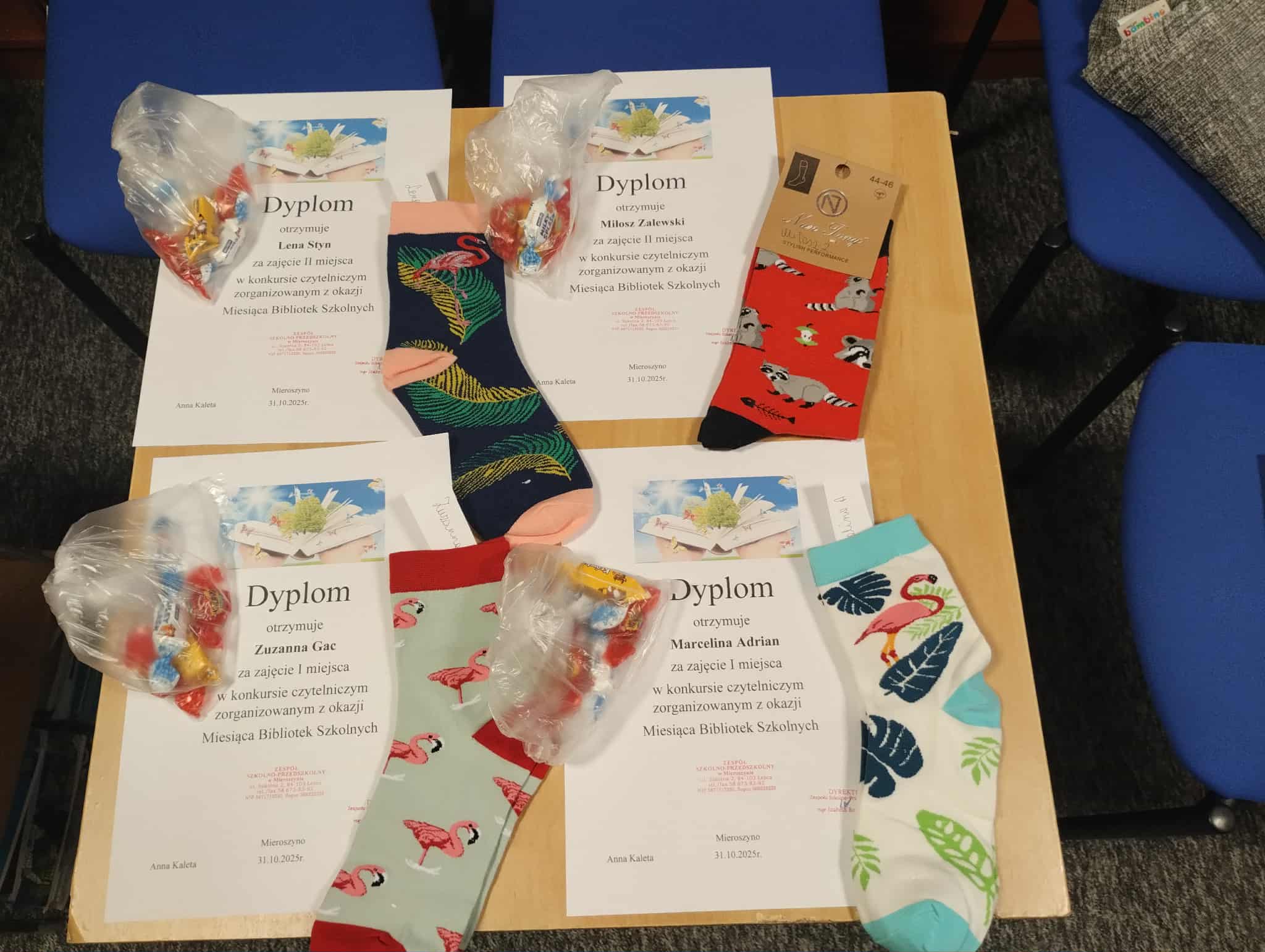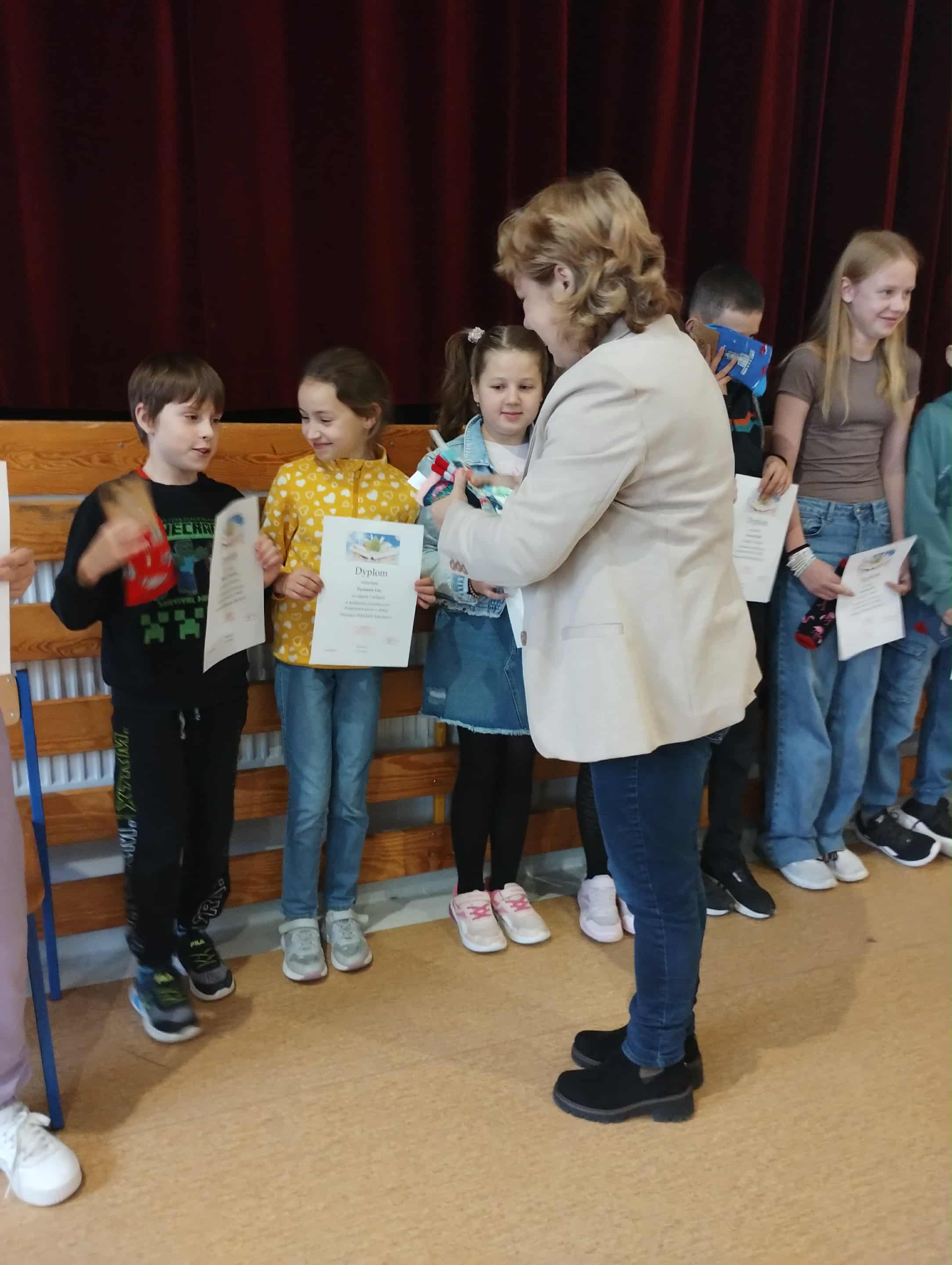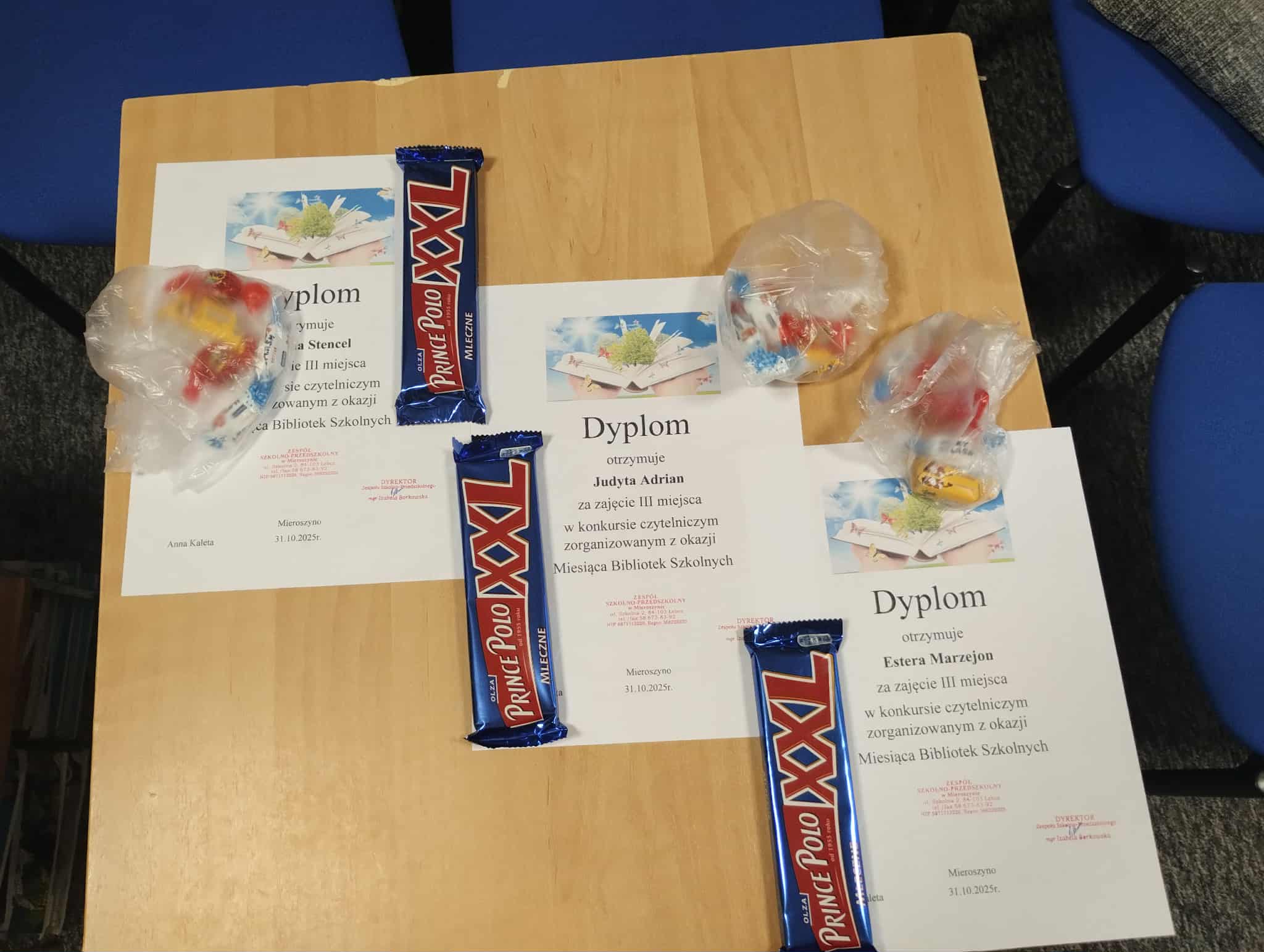26 uczestników wzięło udział w konkursie czytelniczym zorganizowanym z okazji Miesiąca Bibliotek Szkolnych. 12 osób zostało nagrodzonych. Uczniowie, każdy z swojej kategorii, sprawdzali swoją wiedzę z lektur: "Cukierku, ty łobuzie" Waldemara Cichonia, " Asiuni" Joanny Papuzińskiej, "Akademii Pana Kleksa" Jana Brzechwy,"Chłopców z Planu Broni" Ferenca Molnara, "Hobbita" J. R.R. Tolkiena oraz "Dziadów" Adama Mickiewicza. I miejsce ex aequo otrzymali Franciszek Jeka, Martyna Jeka, Mikołaj Goyke, Aleksander Kohnke, Marcel Okoń, Marcelina Adrian oraz Zuzanna Gac. II miejsce ex aequo otrzymali Miłosz Zalewski oraz Lena Styn. III miejsce ex aequo otrzymali Helena Stencel, Judyta Adrian i Estera Marzejon. Uczniom zostały wręczone dyplomy, nagrody i słodkości. Dziękuję wszystkim za udział. Anna Kaleta