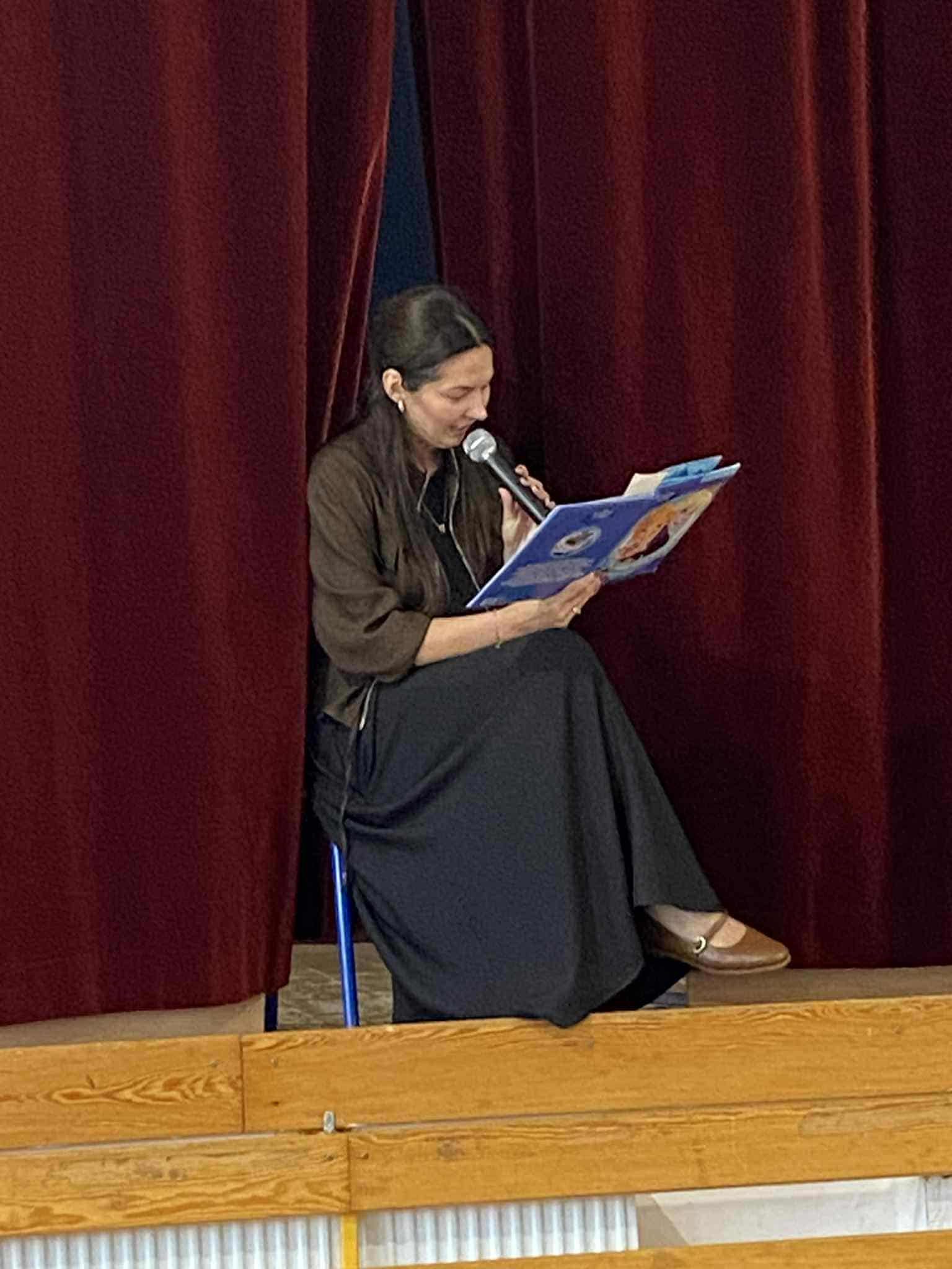 Porazińska. Następnie dzieci i młodzież odgadywali kto czyta im wiersze