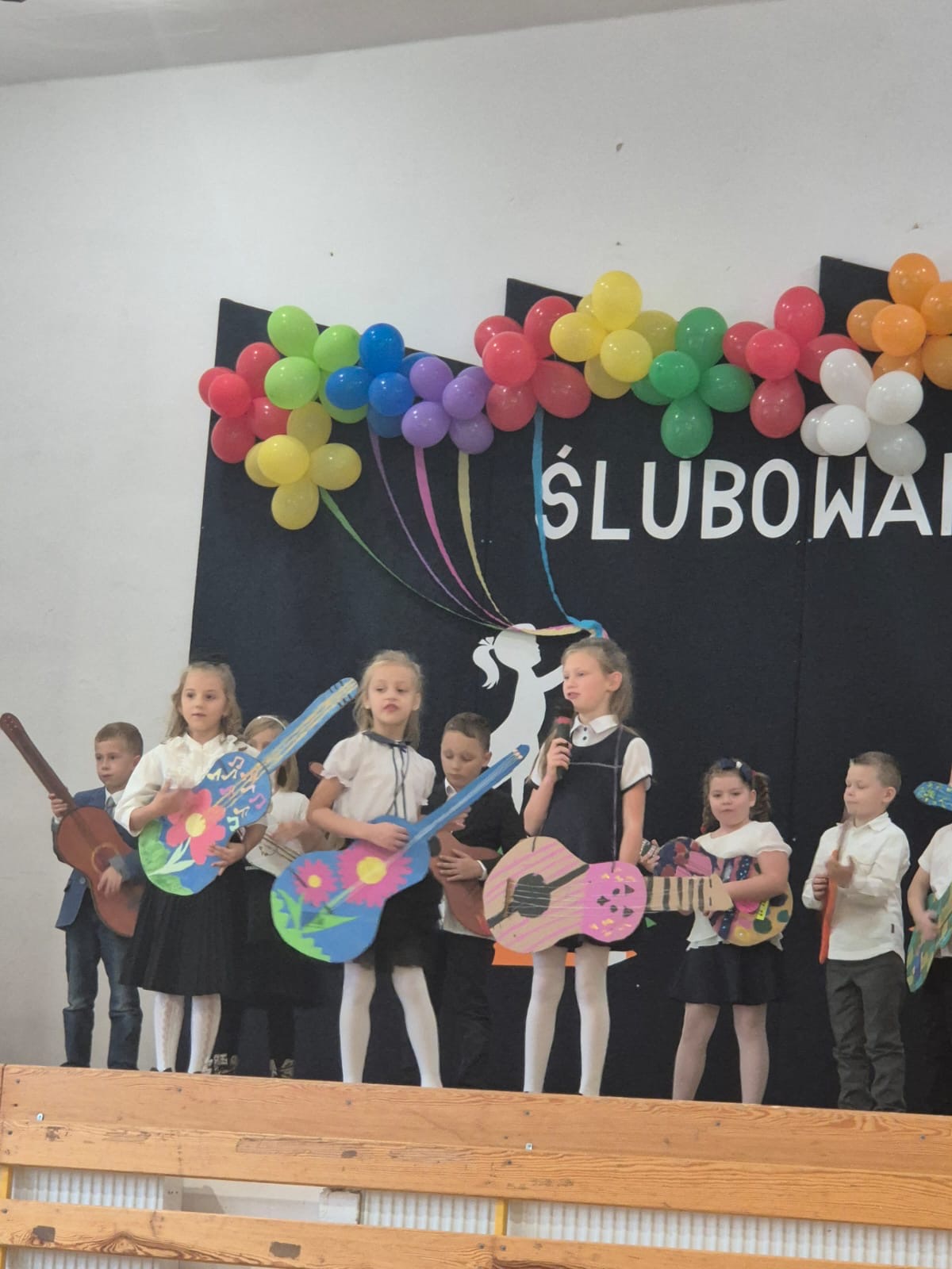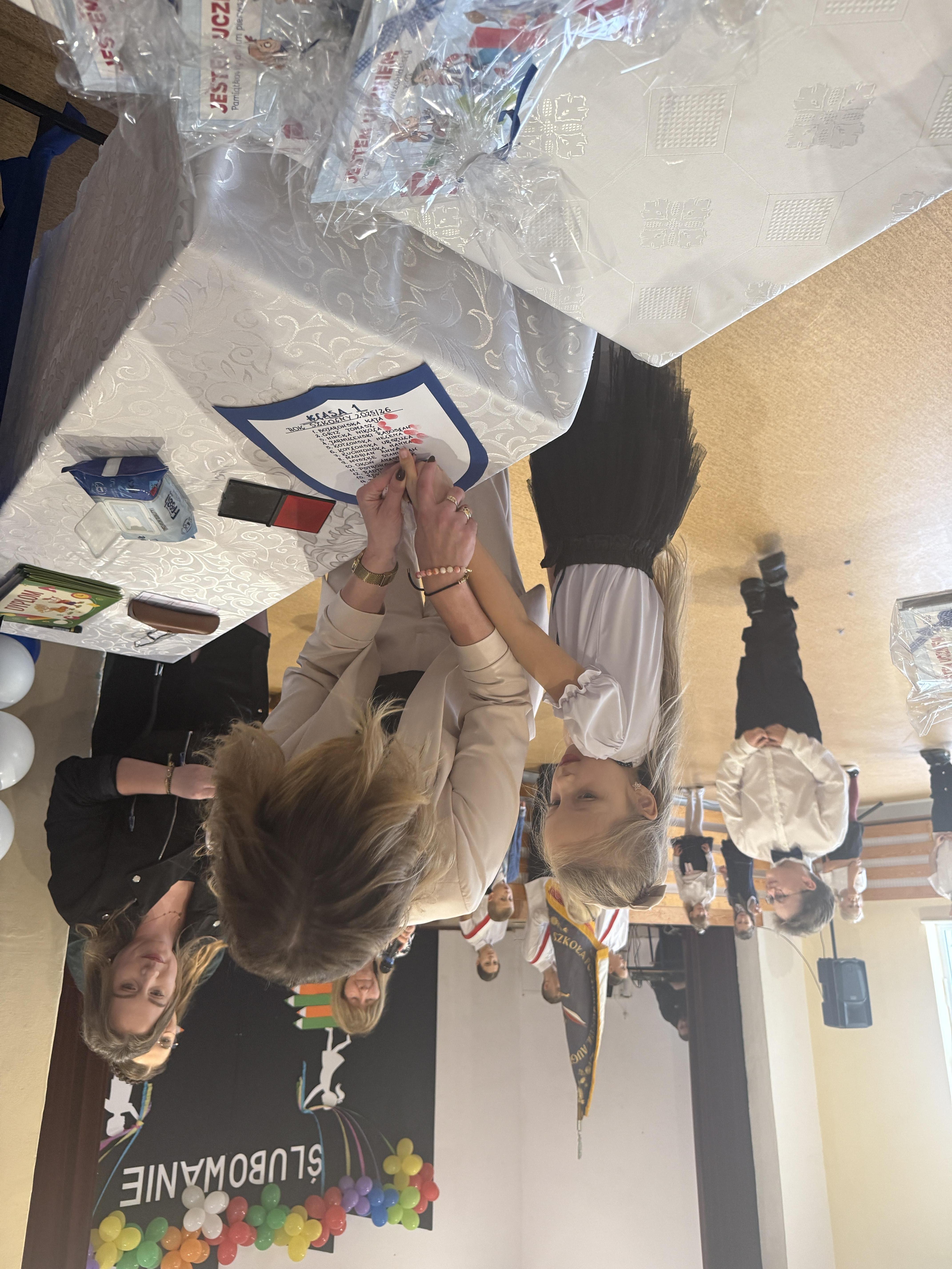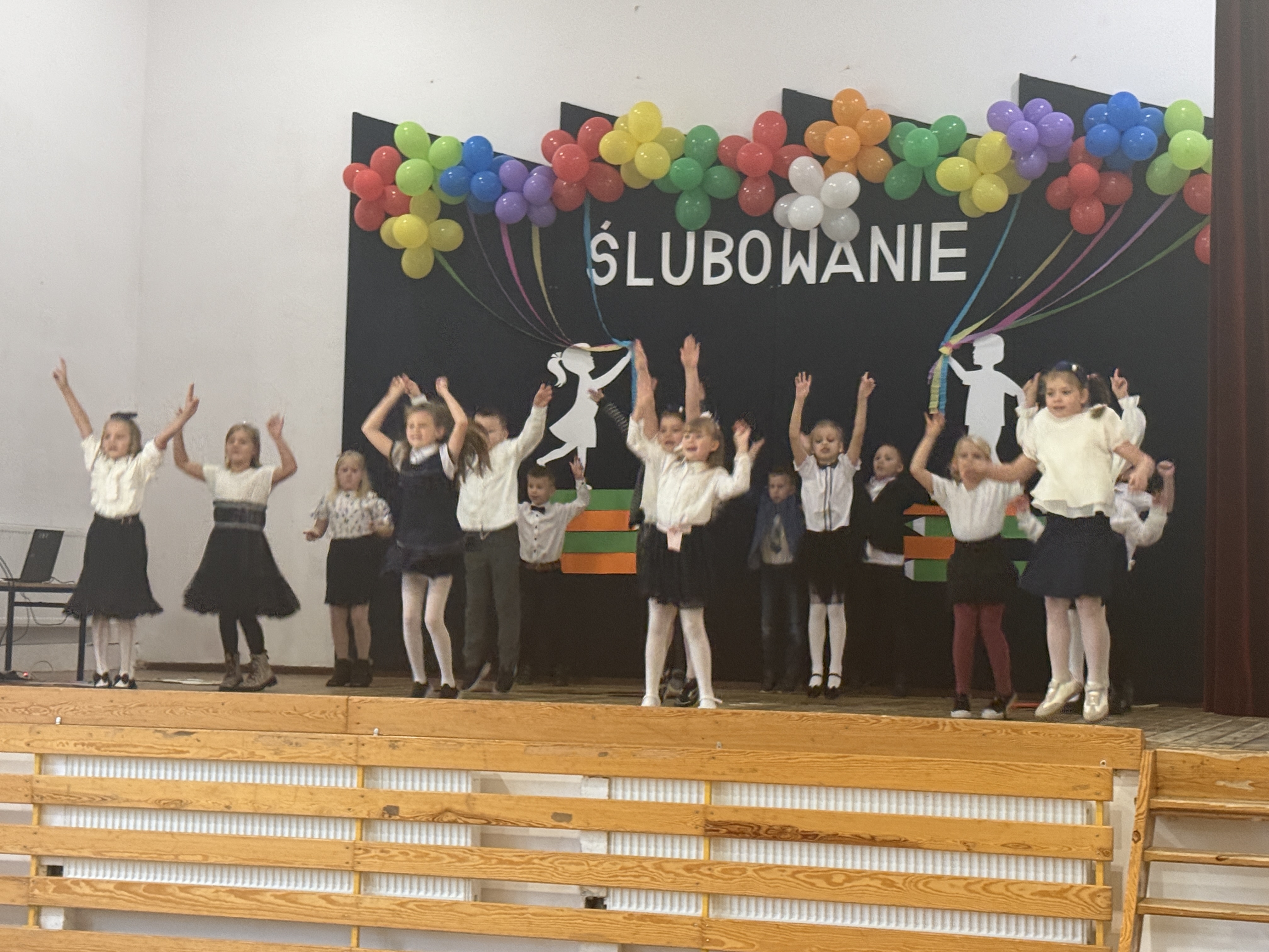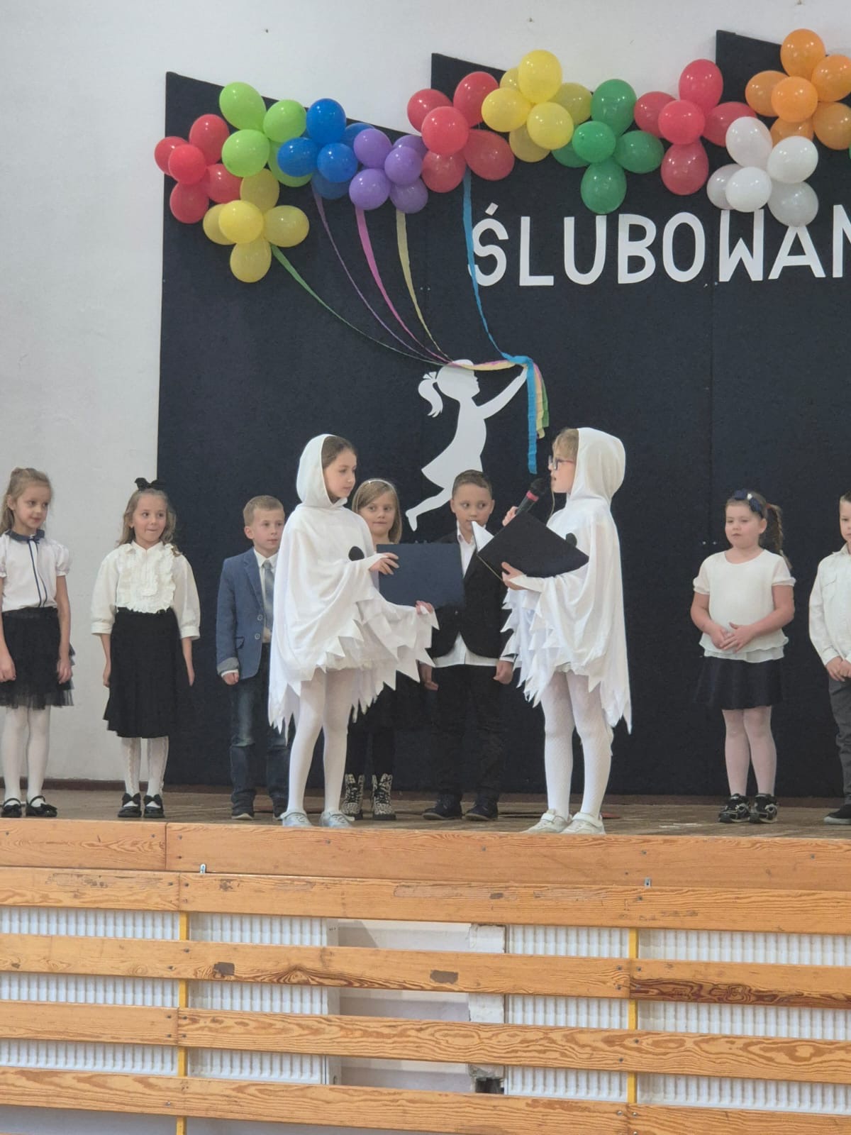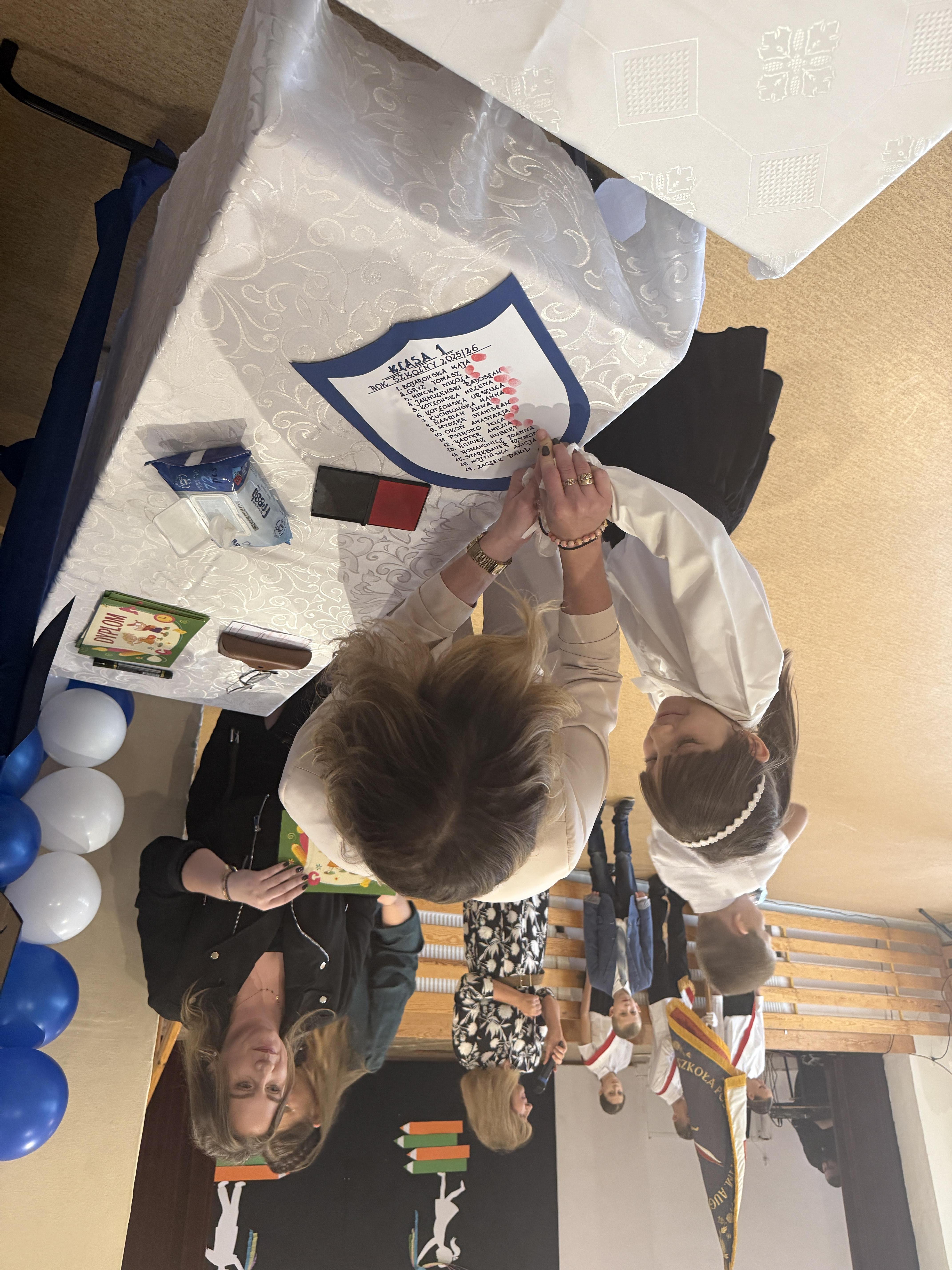 17 października 2025 roku, odbyła się ważna uroczystość - Pasowanie na Ucznia. Dzieci z klasy 1 przygotowywały się do tej uroczystości, uczyły się wierszy i piosenek. Tego dnia panowała świąteczna atmosfera. Dzieci zaprezentowały wzorowo przed Rodzicami, nauczycielami i starszymi kolegami swoje umiejętności. Publiczność nagrodziła dzielnych pierwszaków gromkimi brawami. Najważniejszym momentem uroczystości było złożenie przez Dzieci ślubowania na sztandar szkoły oraz pasowanie na ucznia, którego dokonała dyrektor szkoły. Ukoronowaniem aktu pasowania było wręczenie dyplomów i prezentów.
