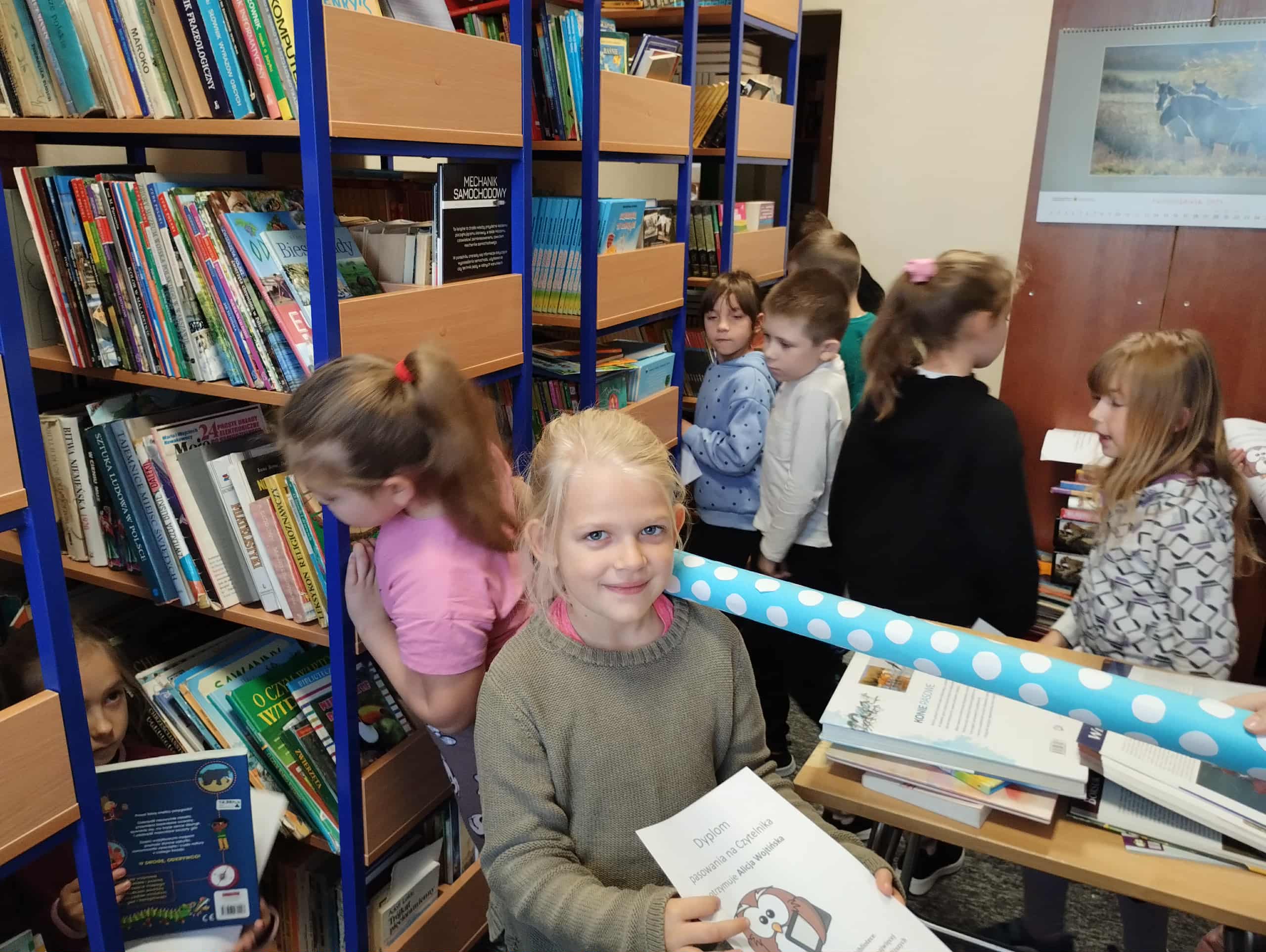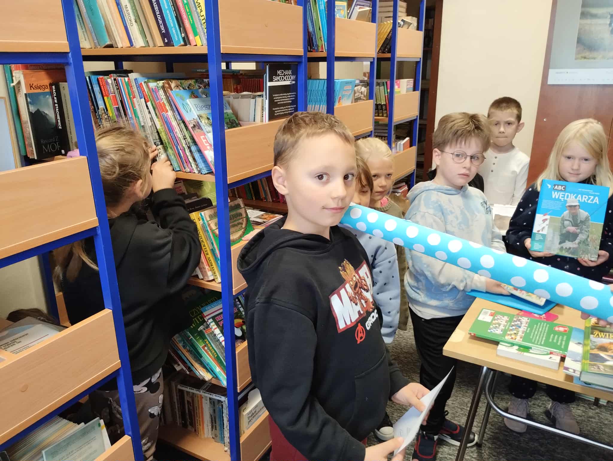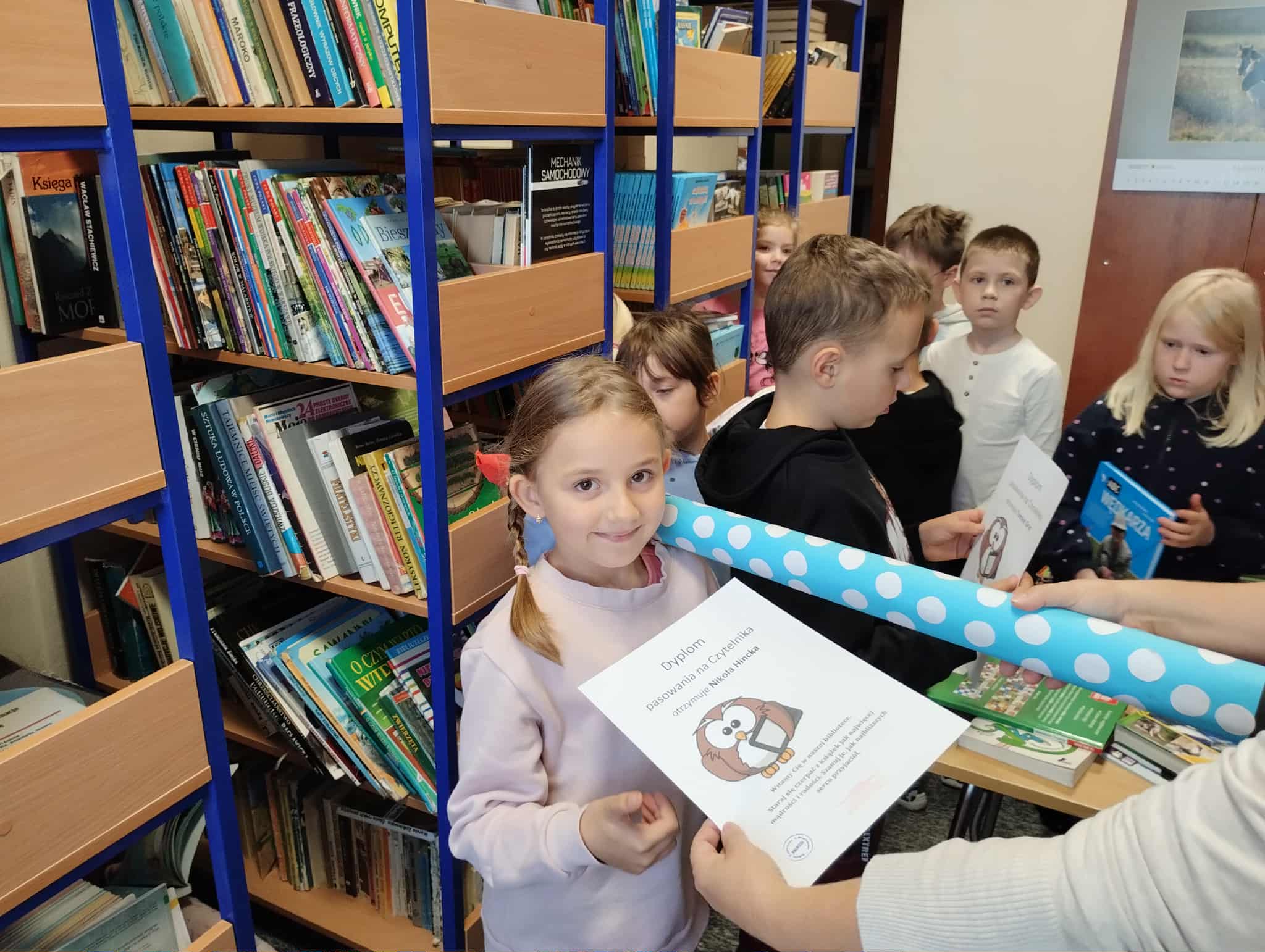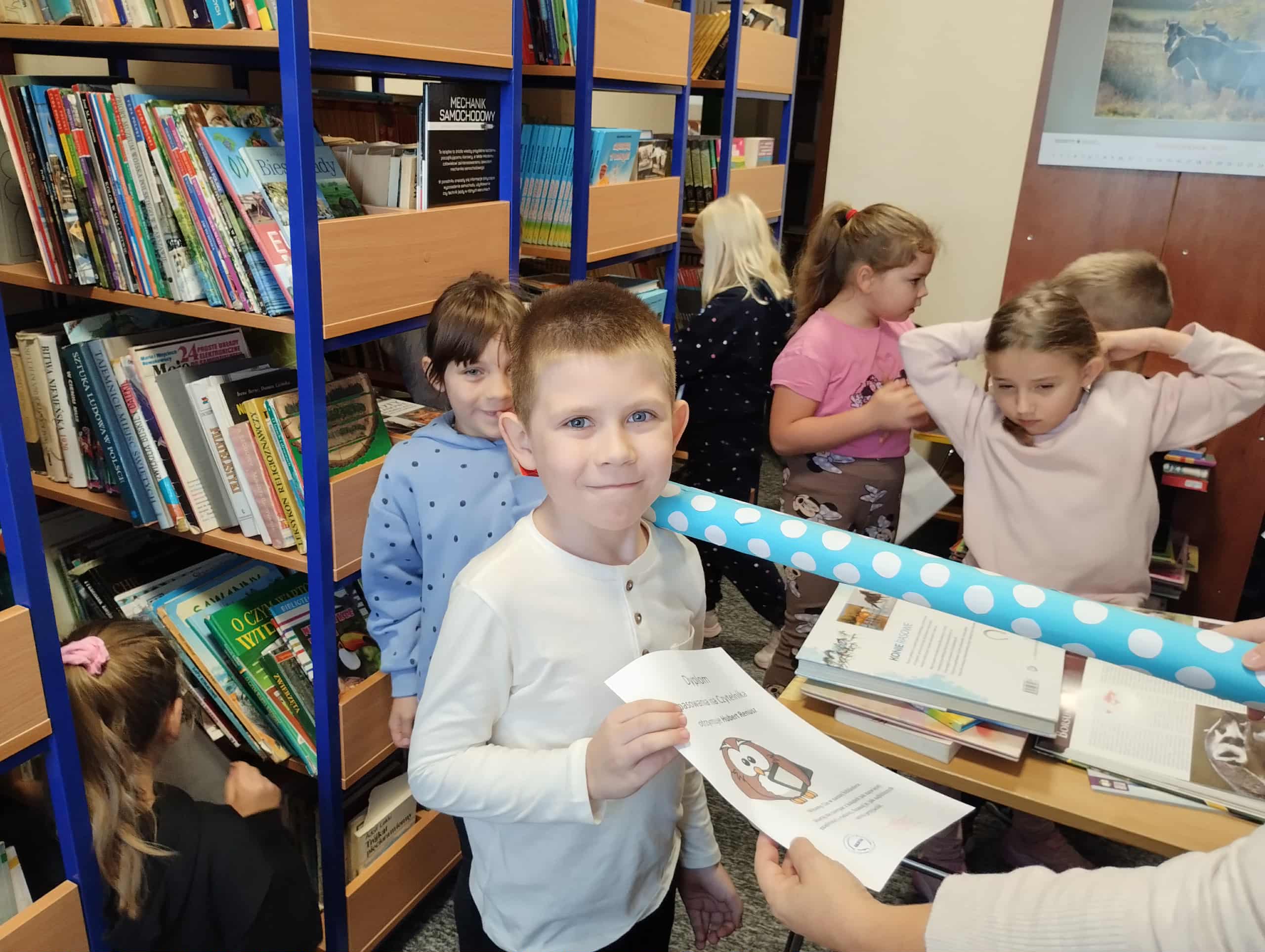 W szkolnej bibliotece, 21 października, odbyło pasowanie uczniów klasy 1 na czytelników. Pierwszoklasiści zapoznali się z zasadami wypożyczalnia książek, z tym jak należy obchodzić się z książeczkami w domu, co należy zrobić jak się zniszczą oraz zostali zaproszeni do czytania i oglądania zbiorów biblioteki podczas przerw. Wszyscy pięknie opowiadali o ulubionych książeczkach, dobrze wiedzieli co można robić, a czego nie można z wypożyczoną książką. Po pasowaniu poczęstowali się słodkościami i z dyplomem oraz książką w ręku wrócili na lekcje. Dziękuję za miłe spędzony czas z Wami. Anna Kaleta