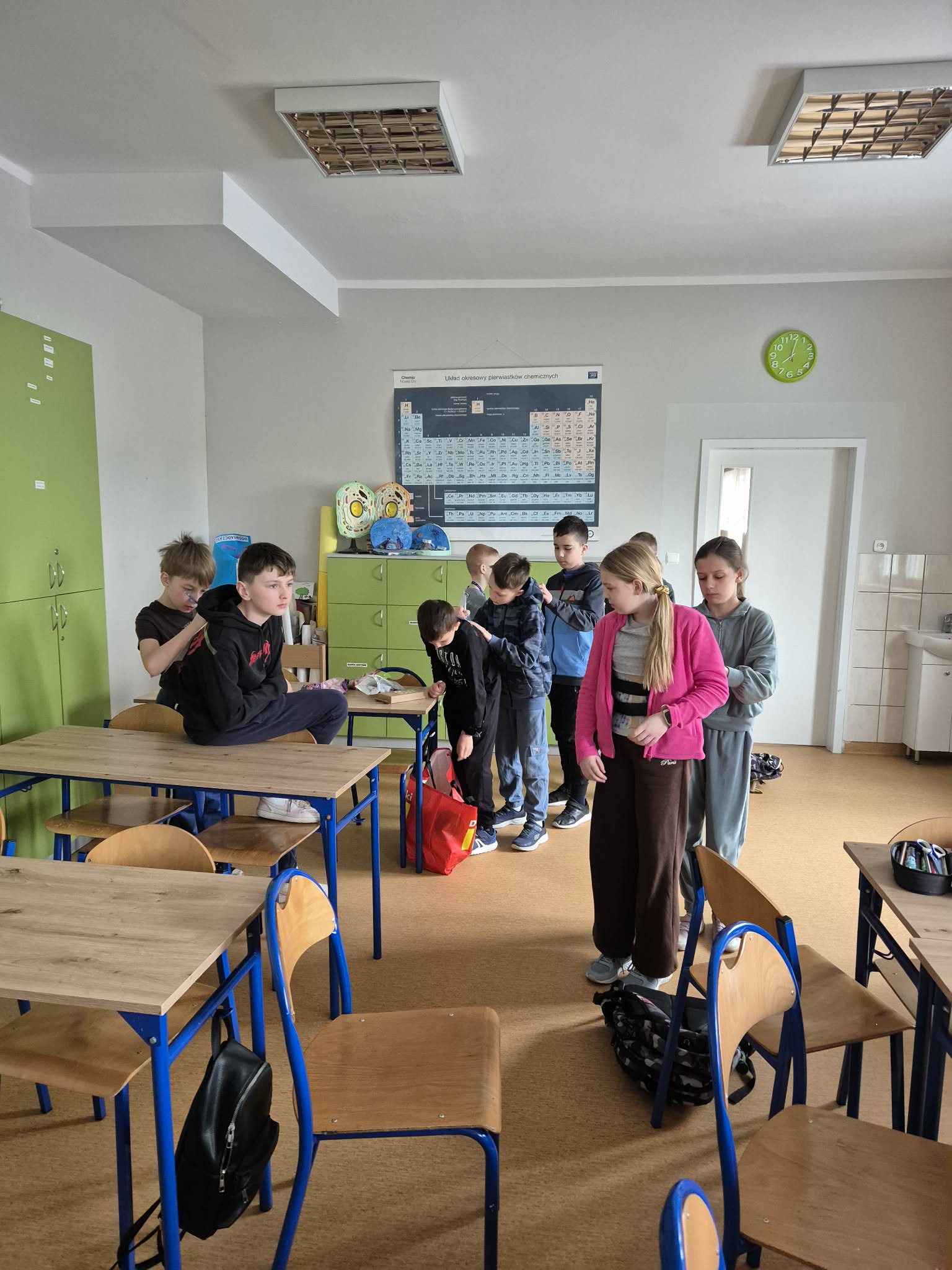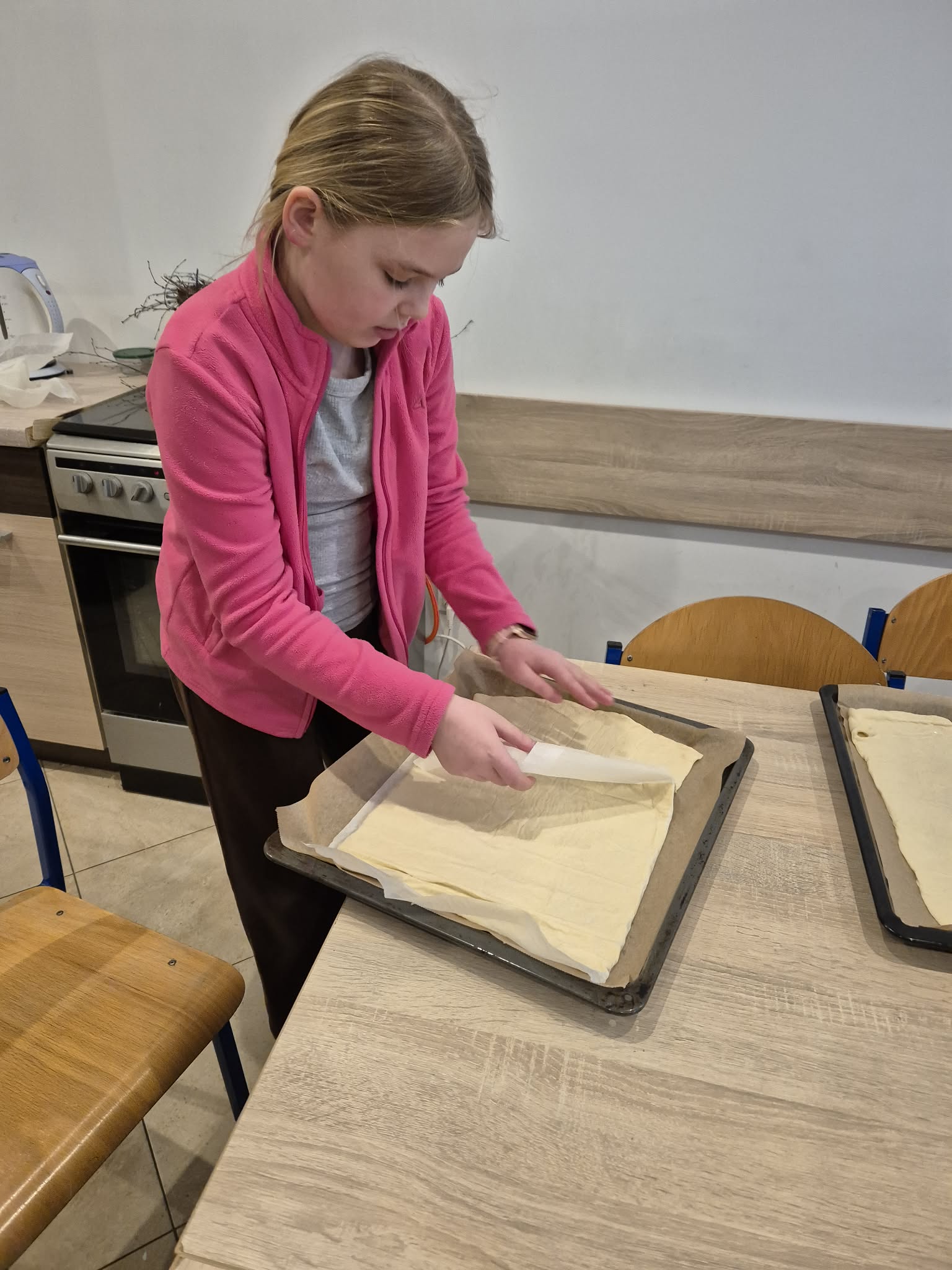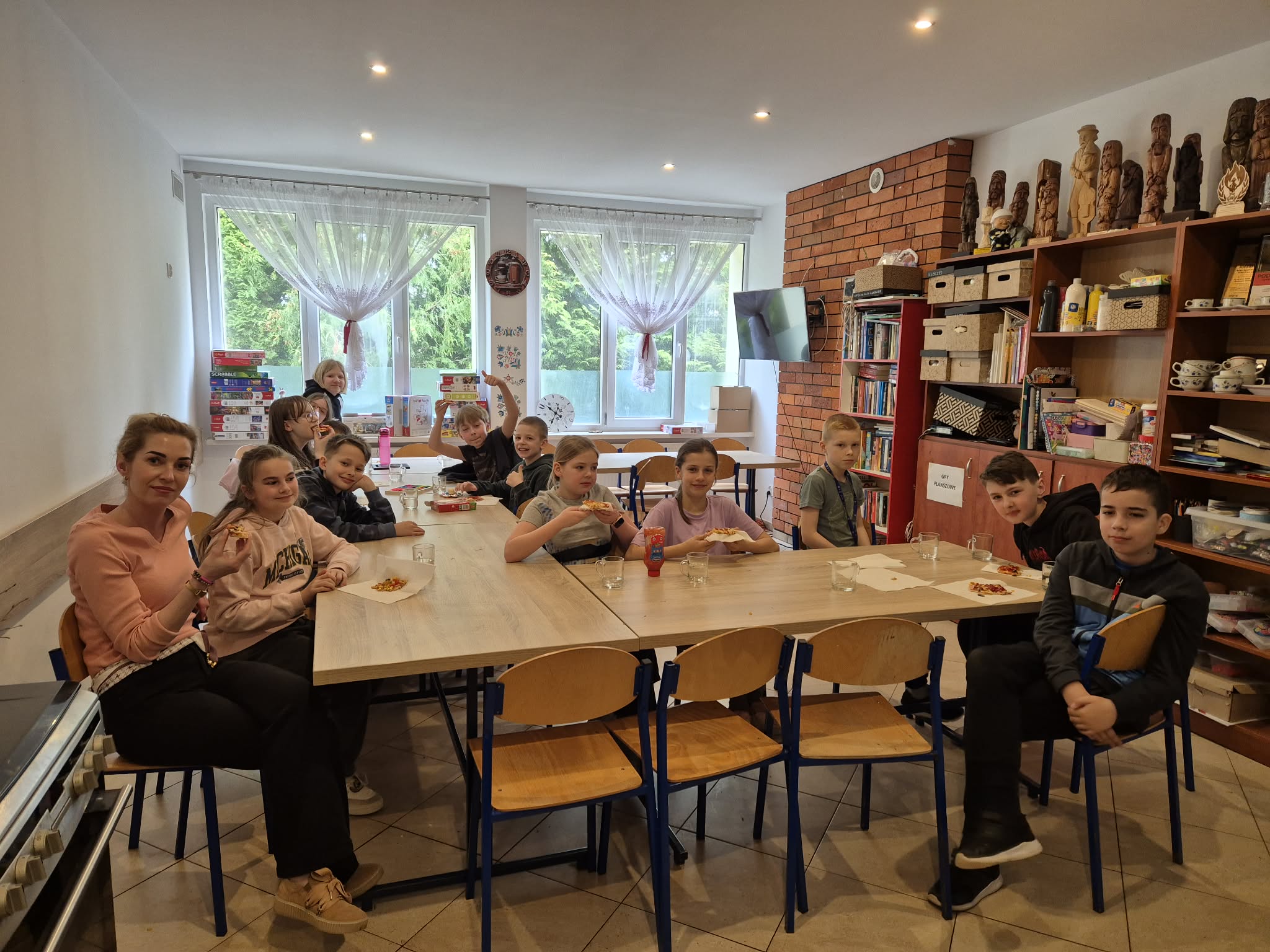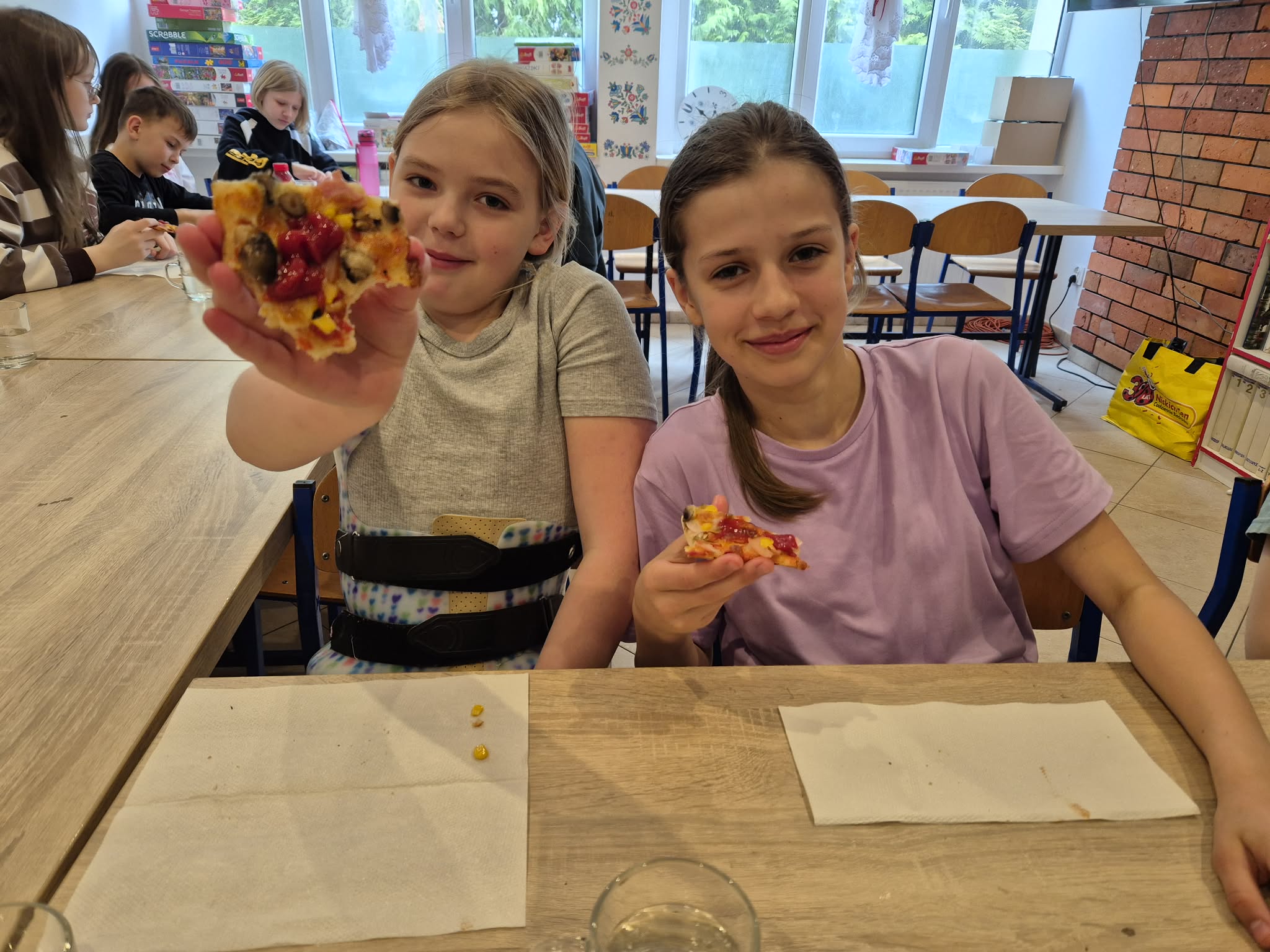 Pierwszy dzień wiosny w klasie 4 upłynął w bardzo radosnej i integrującej atmosferze. Uczniowie rozpoczęli dzień od wyjątkowej aktywności – pisali sobie nawzajem miłe słowa i krótkie wiadomości, co wywołało wiele uśmiechów i pozytywnych emocji. Była to doskonała okazja do wzmacniania relacji w klasie i budowania życzliwej atmosfery. Kolejną atrakcją było wspólne pieczenie pizzy. Dzieci z dużym zaangażowaniem przygotowywały składniki, komponowały własne kompozycje smakowe, a następnie z radością degustowały efekty swojej pracy.