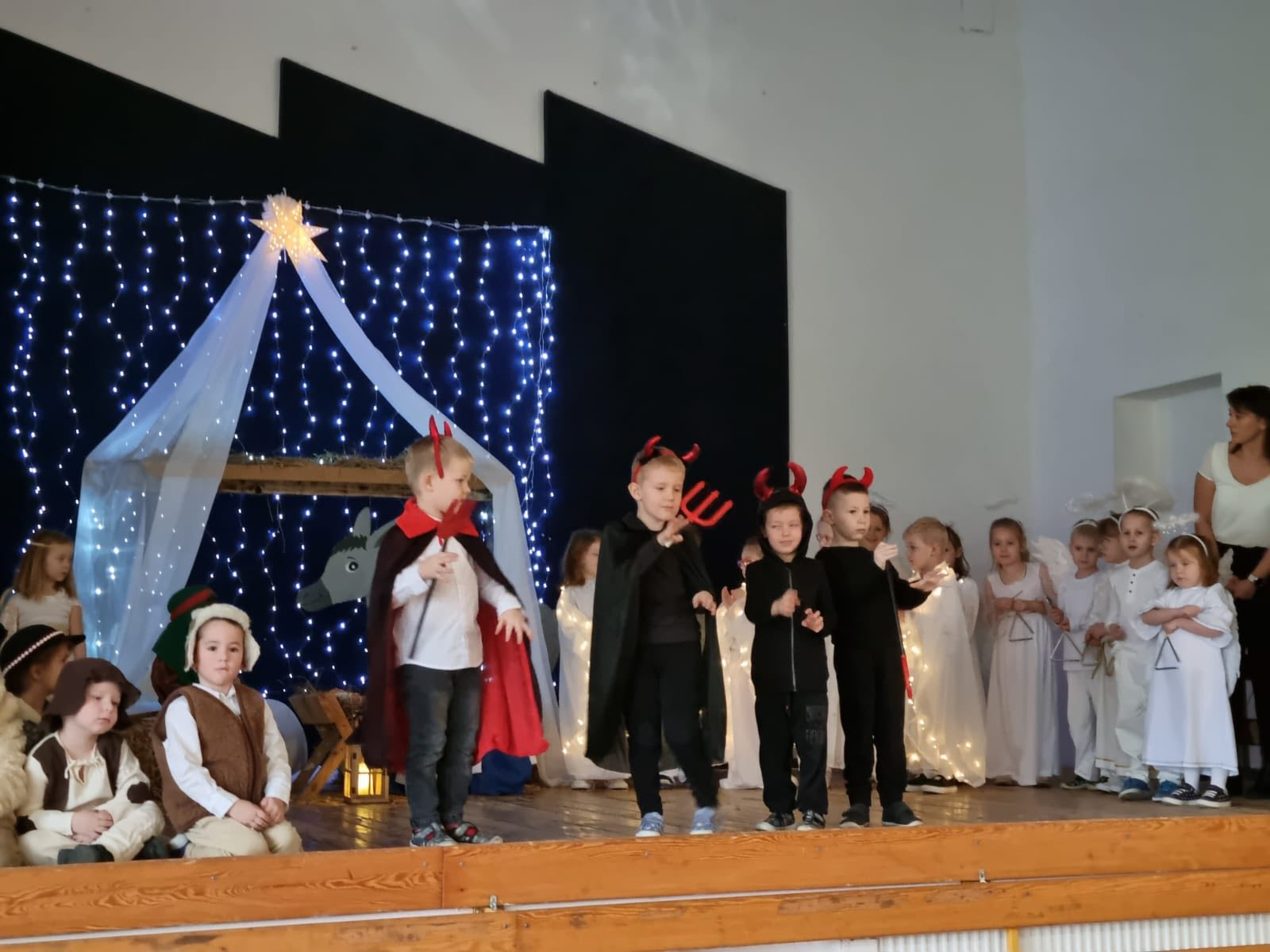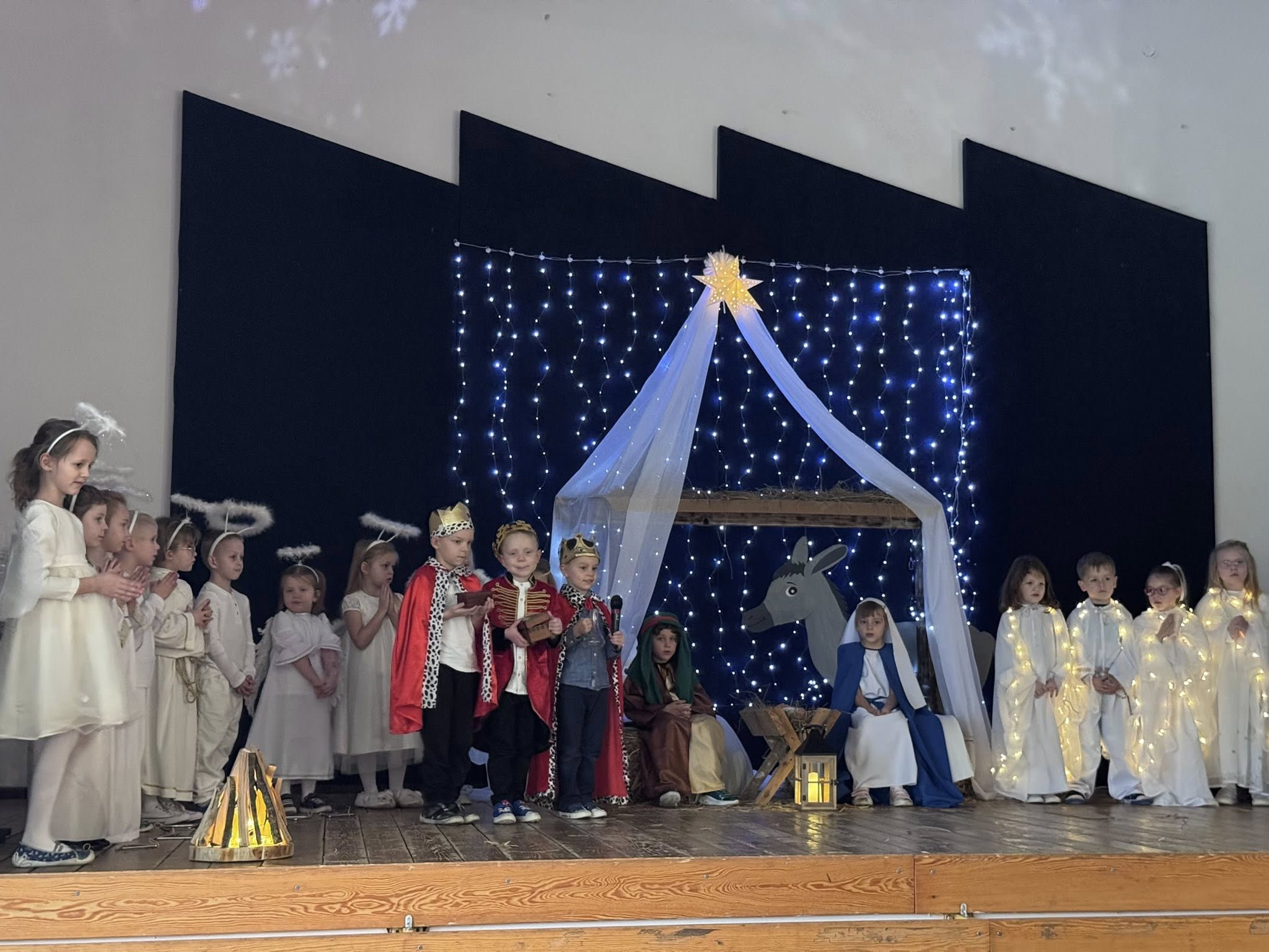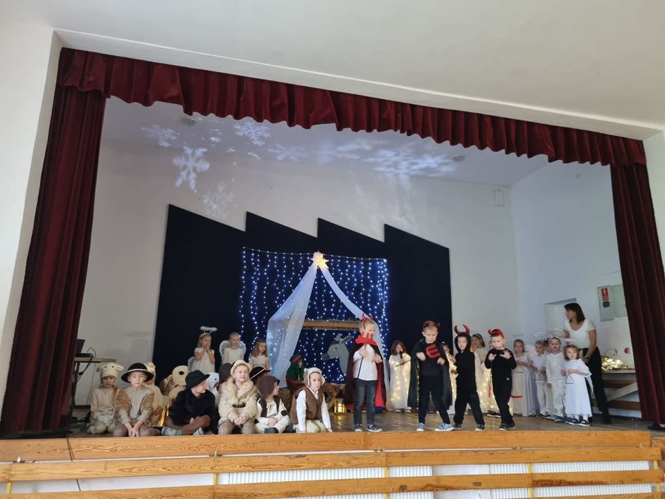 W piątek 12.12.2025r. odbyły się jasełka w wykonaniu naszych przedszkolaków, poprzedzone pastorałką, którą zaprezentowali uczniowie z klas 1-3. Występy najmłodszych były niezwykle wzruszającym i pełnym ciepła wydarzeniem.