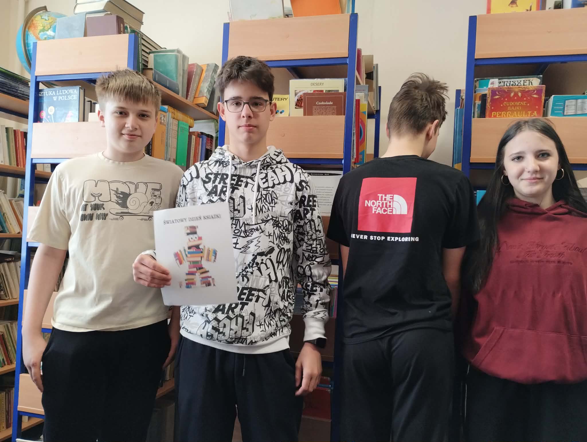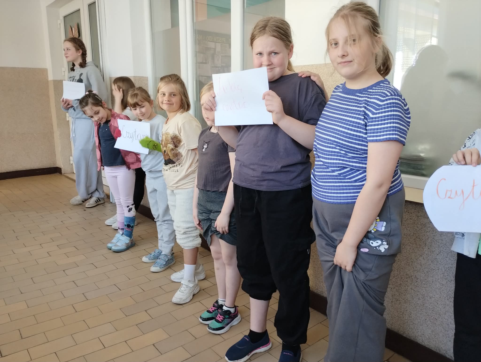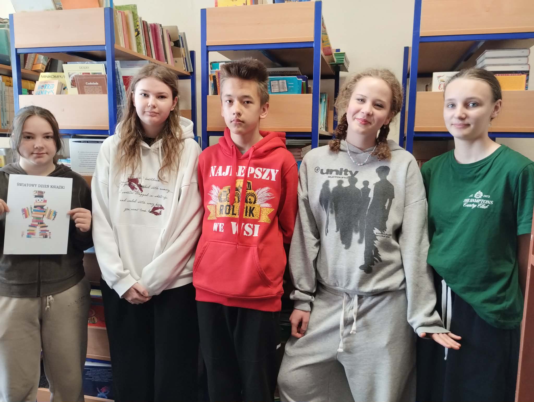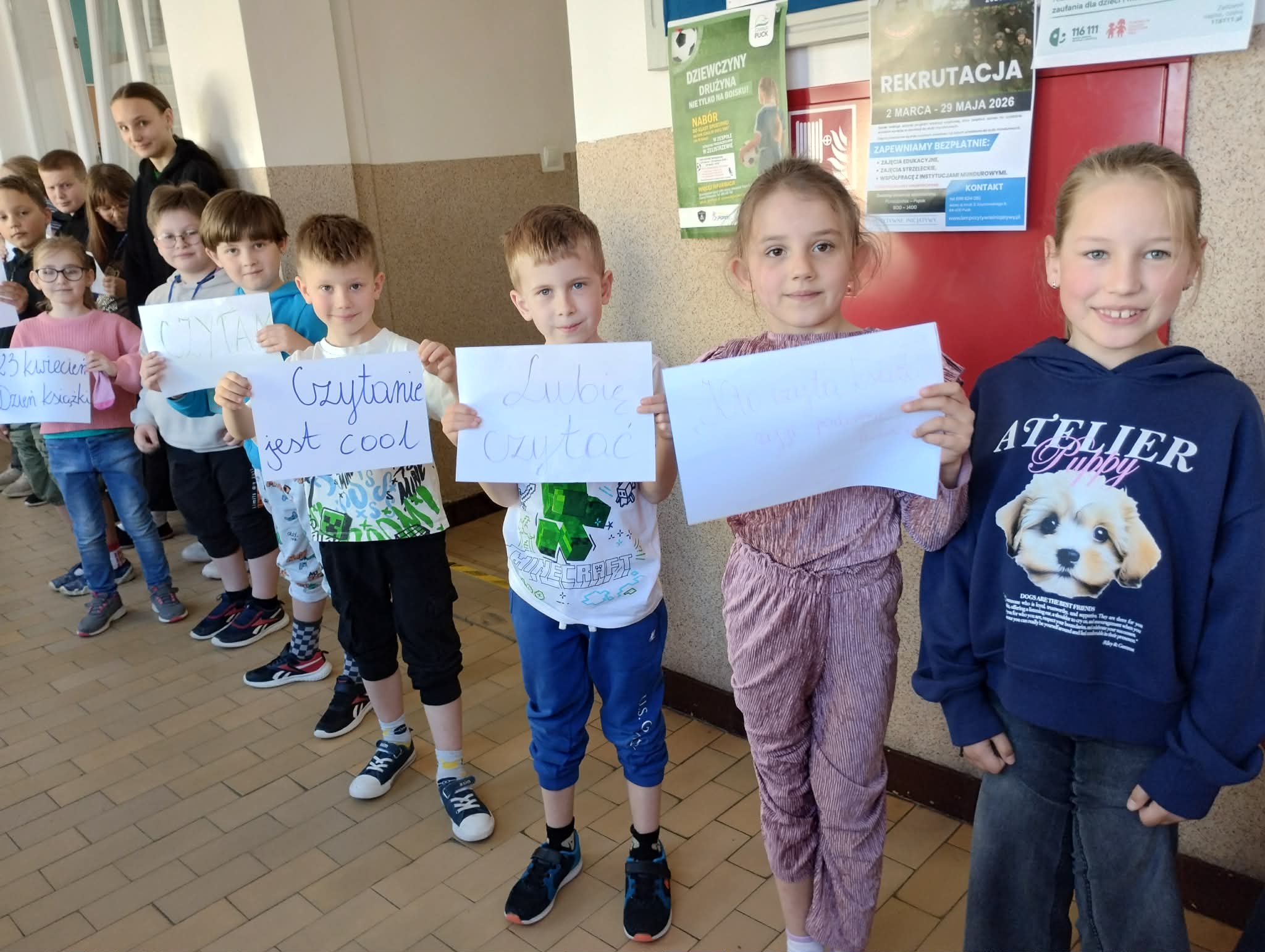 Z okazji Światowego Dnia Książki i Praw Autorskich w dniu 23 kwietnia został zorganizowany tzw. "przemarsz skarpetek" uczniów klas 1-3. Pani Justyna Bednarek napisała jedną z ostatnio bardziej znanych książek: "Niesamowite przygody 10 skarpetek...", dlatego chcieliśmy uczcić Dzień Książki i Praw Autorskich specjalnym przemarszem w najbardziej kolorowych skarpetkach oraz pochwalić się skarpetkami, które mogą przeżywać ciekawe przygody. Uczniowie klas 4-8 prezentowali natomiast bluzy z sentencjami, które są im bliskie lub, które ich rozweselają. Dziękuję wszystkim zainteresowanym za udział w akcji. Anna Kaleta