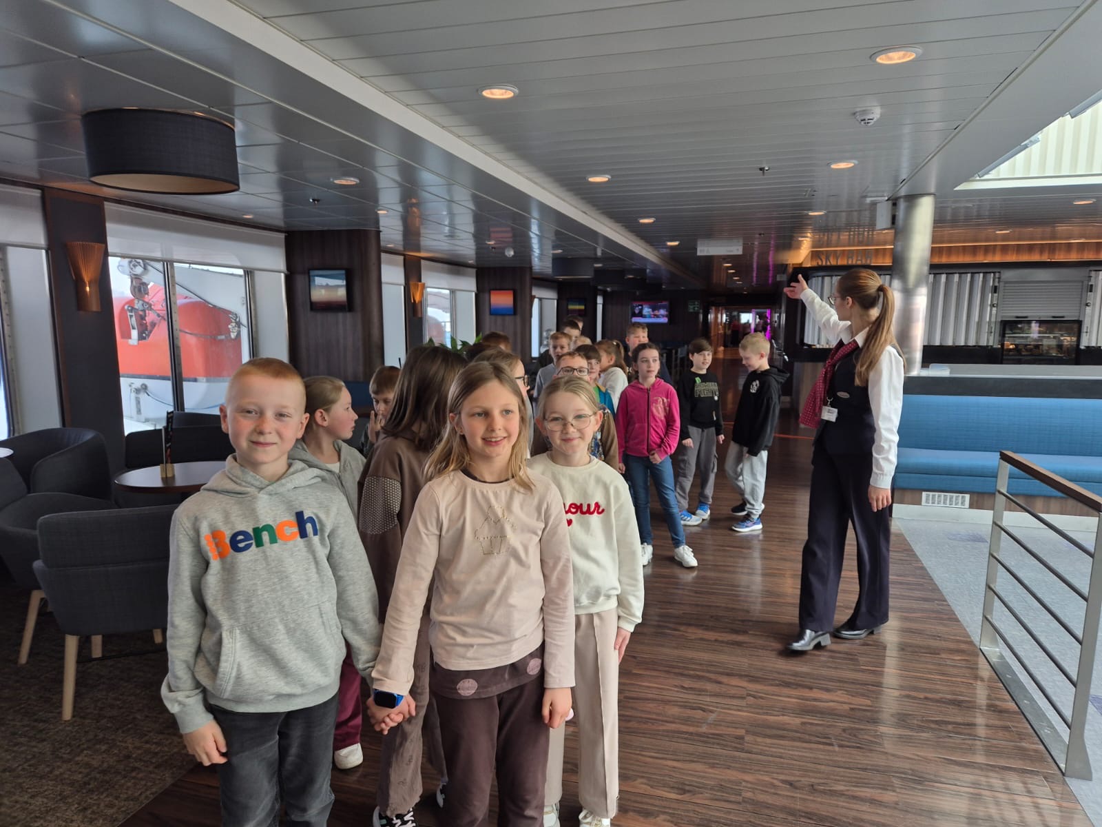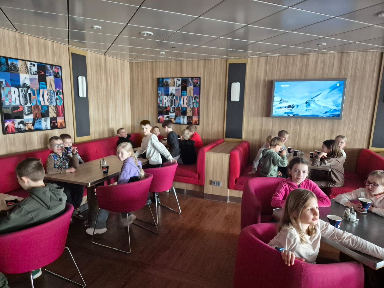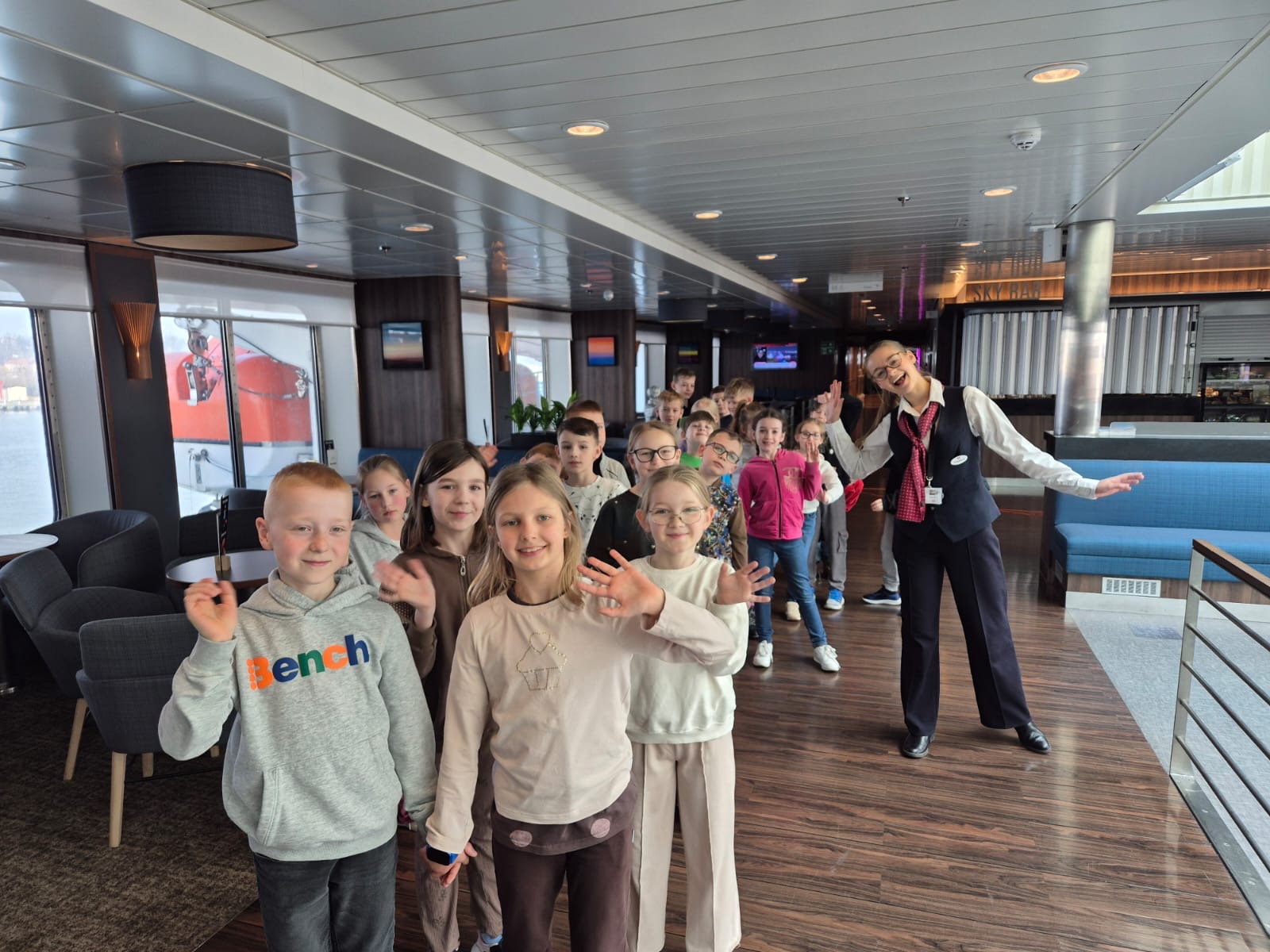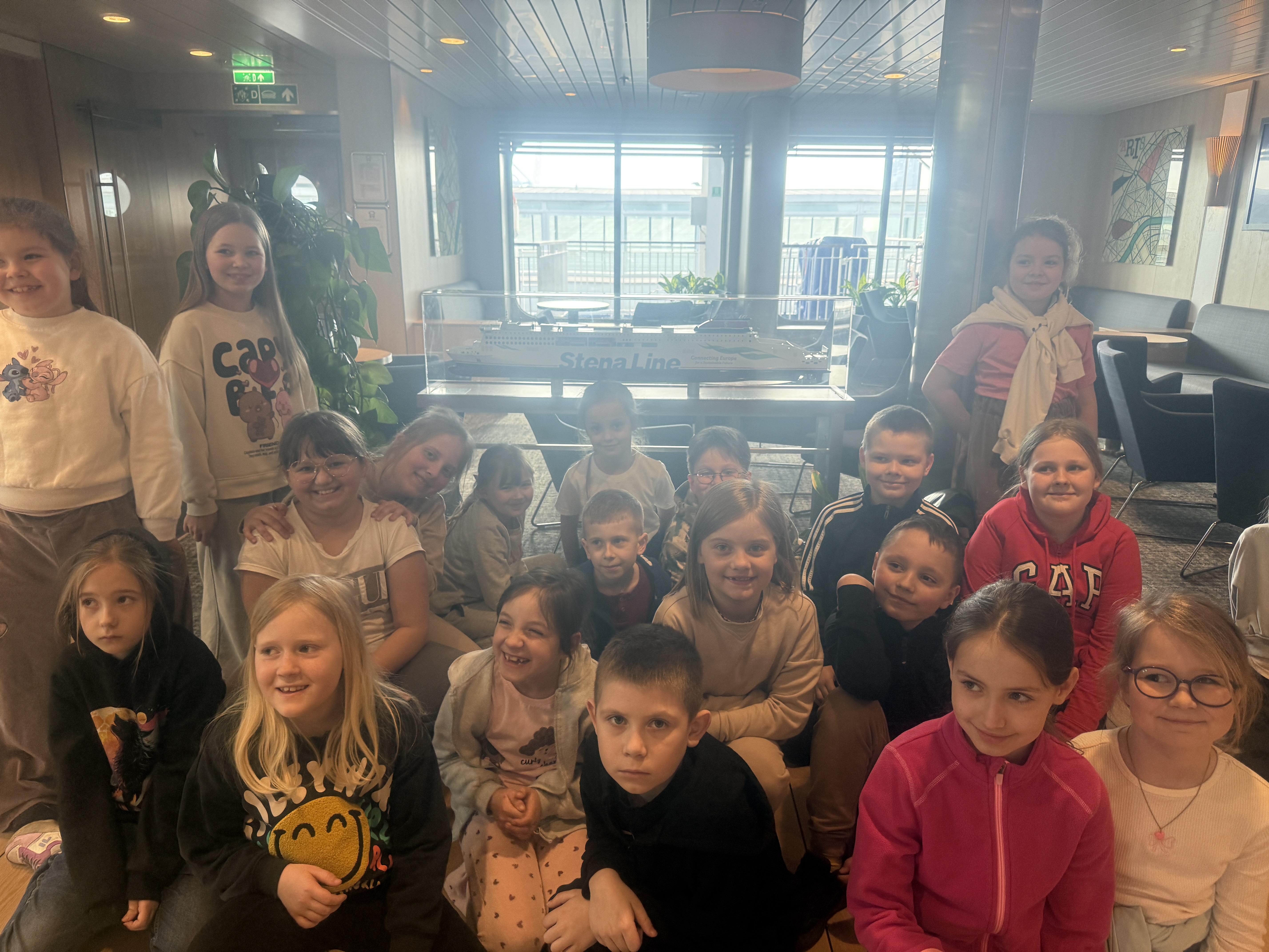 23 marca klasy I -III wzięły udział w wycieczce na prom Stena Line. Uczestnicy wycieczki zapoznali się z funkcjonowaniem promu. Zwiedzili część restauracyjną, kajuty, plac zabaw oraz mostek kapitański. Każdy uczestnik wycieczki mógł przez chwilę poczuć się jak kapitan statku stojąc u jego sterów. W trakcie zwiedzania Pani przewodnik opowiadała o promie oraz o ludziach na nim pracujących. Poza zwiedzaniem czekał na nas słodki upominek w jednej z pokładowych restauracji, a także kolorowe książeczki. Wycieczka była baaardzo ciekawa!!! Dziękujemy Rodzicom, którzy wsparli finansowo tę wycieczkę i tym, którzy zadbali o uatrakcyjnienie naszego pobytu na promie.